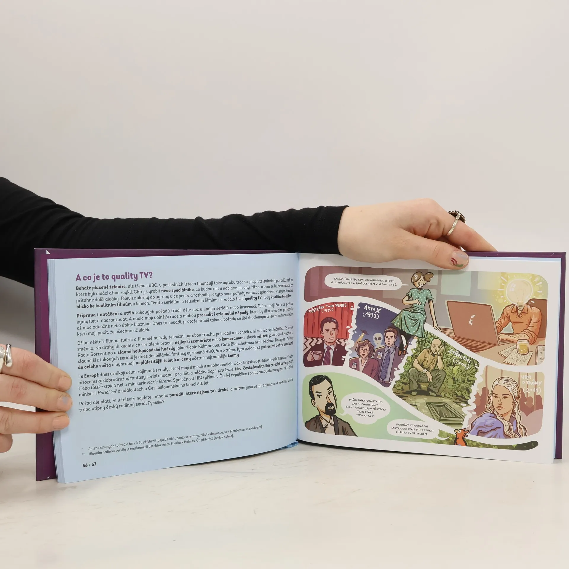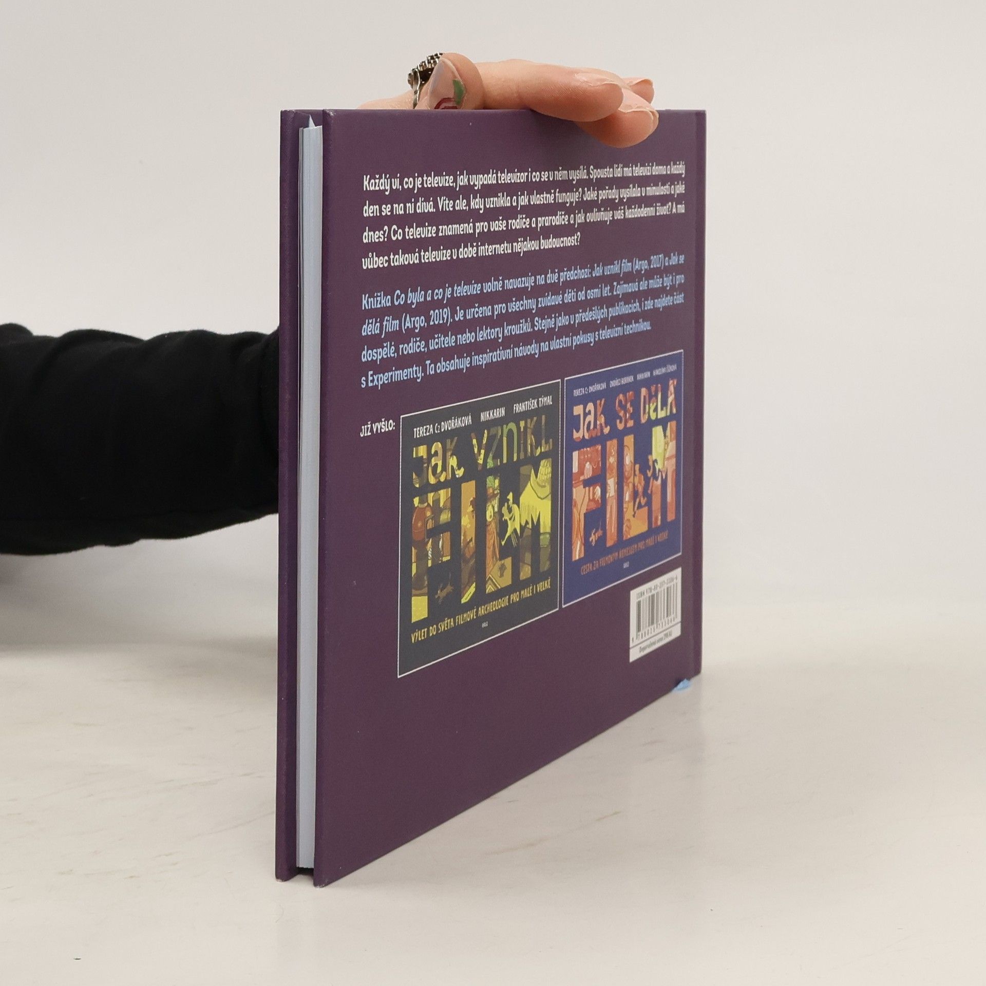 Každý ví, co je televize. Hodně lidí ji má doma a každý den se na ni dívá. Všichni tedy víte, jak televizor vypadá i co se v něm vysílá. Víte ale také, kdy televize vznikla a jak vlastně funguje? Jaké pořady vysílala v minulosti a jaké dnes? Co televize znamená pro vaše rodiče a prarodiče a jak ovlivňuje váš každodenní život? A má vůbec taková televize v době internetu nějakou budoucnost? Knížka Co byla a co je televize volně navazuje na dvě předchozí: Jak vznikl film (Argo, 2017) a Jak se dělá film (Argo, 2019). Je určena pro všechny zvídavé děti od osmi let. Zajímavá ale může být i pro dospělé, rodiče, učitele nebo lektory kroužků. Stejně jako v předešlých dílech, i zde najdete část nazvanou Experimenty. Ta obsahuje inspirativní návody na vlastní pokusy s televizní technikou. Vydání knihy podpořilo Ministerstvo kultury České republiky.