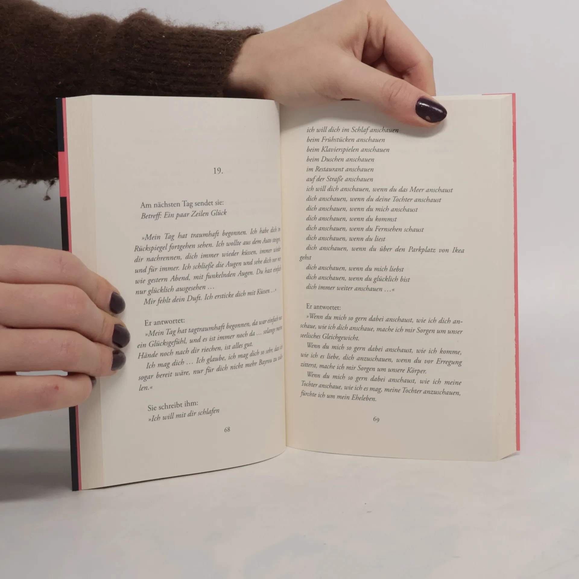 SIE ist dreißig und eine erfolgreiche Journalistin. Mit ihrem Verlobten, der oft auf Reisen ist, lebt sie in einem Traumloft in der Nähe des Canal Saint Martin. Im Juni wollen sie heiraten. ER, ebenfalls dreißig, lebt im selben Gebäude und startet gerade beruflich durch. Er liebt seine Frau und seine süße kleine Tochter. An einem regenerischen Novemberabend begegnen sie sich draußen auf dem Hof und halten den Atem an. Es ist der Moment, in dem alles beginnt. Ohne zu Zögern und mit ganzer Leidenschaft und Begierde stürzen die beiden sich in eine »Amour fou«, über die sie bald jede Kontrolle verlieren.