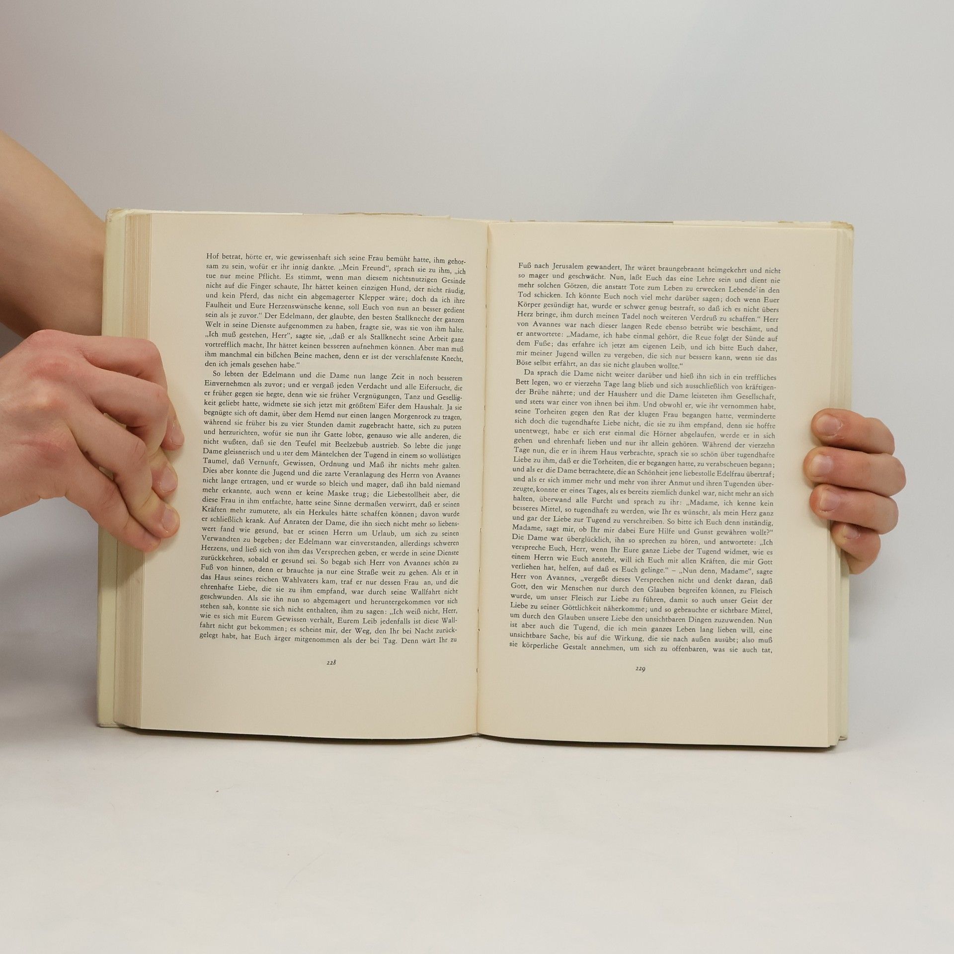 Margarete von Navarra: Das Heptameron. Die Erzählungen der Königin von Navarra Erstdruck unter dem Titel »L'Heptaméron des nouvelles de tresillustre et tresexcellente Princesse Marguerite de Valois, Royne de Navarre« Paris 1558 (unvollst.) und 1559. Druck der ersten deutschen Übersetzung »Margeritha, der Königin von Navarra, romantische Erzählungen« von F. A. K. Werthes und J. Ith., 2 Bde.: Berlin 1791. Neuausgabe. Herausgegeben von Karl-Maria Guth. Berlin 2017. Textgrundlage ist die Ausgabe: Der Heptameron. Erzählungen der Königin von Navarra. Aus dem Französischen übersetzt von Wilhelm Förster, Leipzig: Bibliographisches Institut, [o.J.]. Die Paginierung obiger Ausgabe wird in dieser Neuausgabe als Marginalie zeilengenau mitgeführt. Umschlaggestaltung von Thomas Schultz-Overhage unter Verwendung des Bildes: Julius LeBlanc Stewart, Im Schlafzimmer, 1880. Gesetzt aus der Minion Pro, 11 pt.