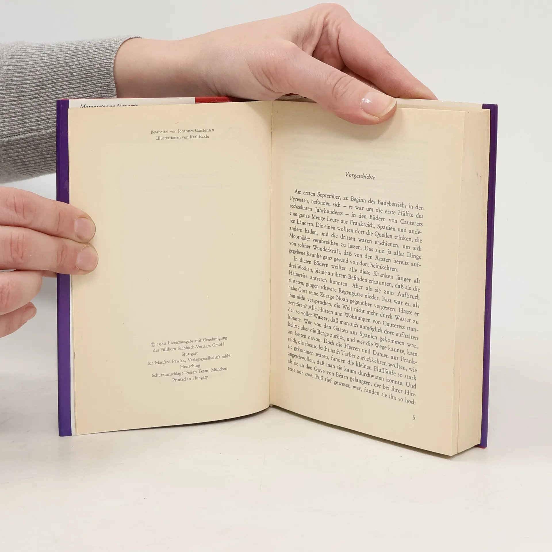 Margarete von Navarra: Das Heptameron. Die Erzählungen der Königin von Navarra Erstdruck unter dem Titel »L'Heptaméron des nouvelles de tresillustre et tresexcellente Princesse Marguerite de Valois, Royne de Navarre« Paris 1558 (unvollst.) und 1559. Druck der ersten deutschen Übersetzung »Margeritha, der Königin von Navarra, romantische Erzählungen« von F. A. K. Werthes und J. Ith., 2 Bde.: Berlin 1791. Neuausgabe. Herausgegeben von Karl-Maria Guth. Berlin 2017. Textgrundlage ist die Ausgabe: Der Heptameron. Erzählungen der Königin von Navarra. Aus dem Französischen übersetzt von Wilhelm Förster, Leipzig: Bibliographisches Institut, [o.J.]. Die Paginierung obiger Ausgabe wird in dieser Neuausgabe als Marginalie zeilengenau mitgeführt. Umschlaggestaltung von Thomas Schultz-Overhage unter Verwendung des Bildes: Julius LeBlanc Stewart, Im Schlafzimmer, 1880. Gesetzt aus der Minion Pro, 11 pt.