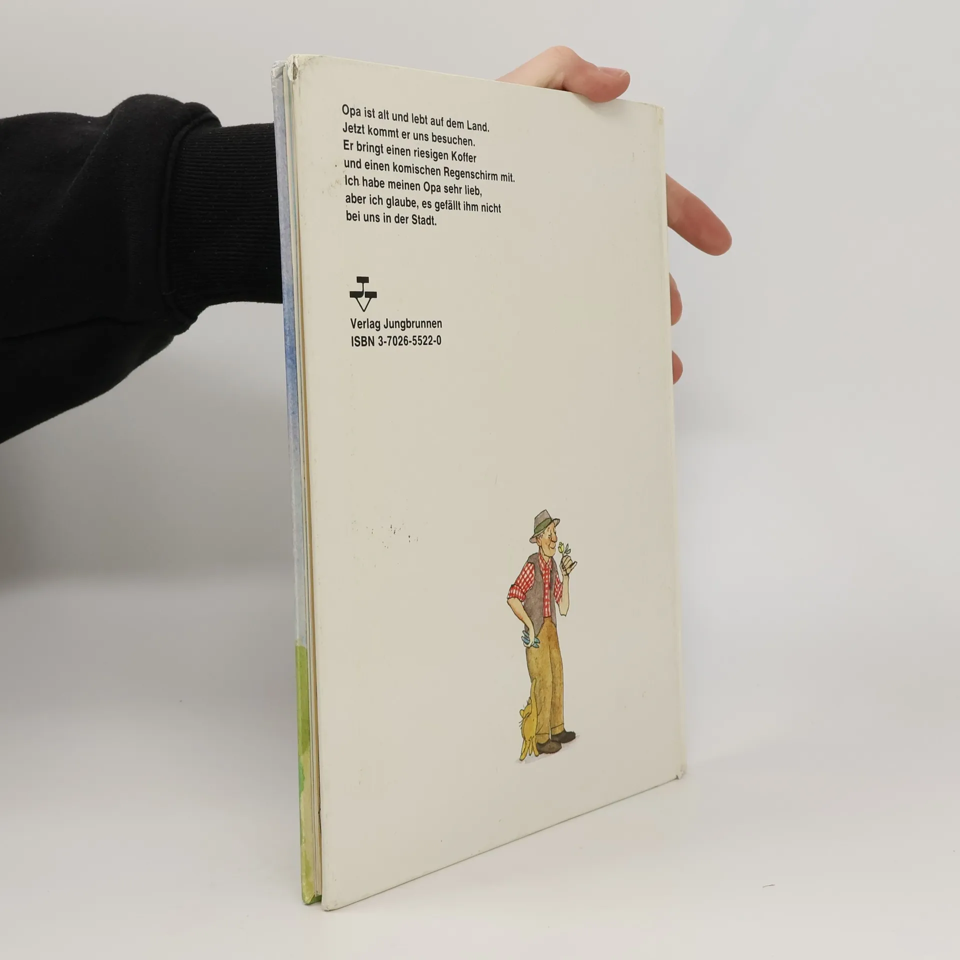 Opa ist alt und lebt auf dem Land. Jetzt kommt er uns besuchen. Er bringt einen riesigen Koffer und einen komischen Regenschirm mit. Ich habe meinen Opa sehr lieb, aber ich glaube, es gefällt ihm nicht bei uns in der Stadt