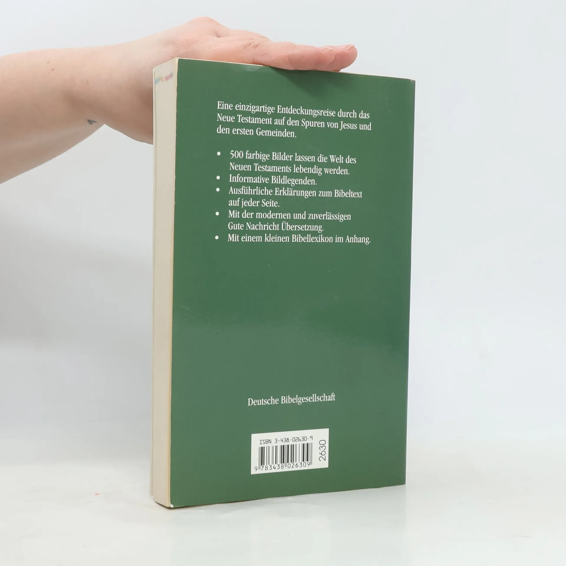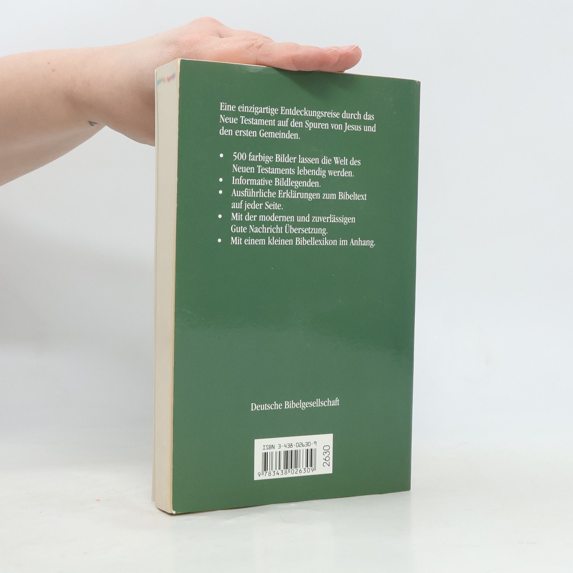Das Neue Testament in der zuverlässigen Übersetzung der Gute Nachricht Bibel als besonders attraktive Ausgabe für Menschen von heute. Über 500 Bilder und Karten der biblischen Stätten, Gemälde und Werke aus der Kunstgeschichte sowie aktuelle Fotos aus der Welt von heute lassen die biblische Botschaft in einem neuen, oft überraschenden Licht erscheinen. Mit ausführlichen Erklärungen und Bildlegenden auf jeder Seite und einem kleinen Bibellexikon im Anhang. In neuer Rechtschreibung.
