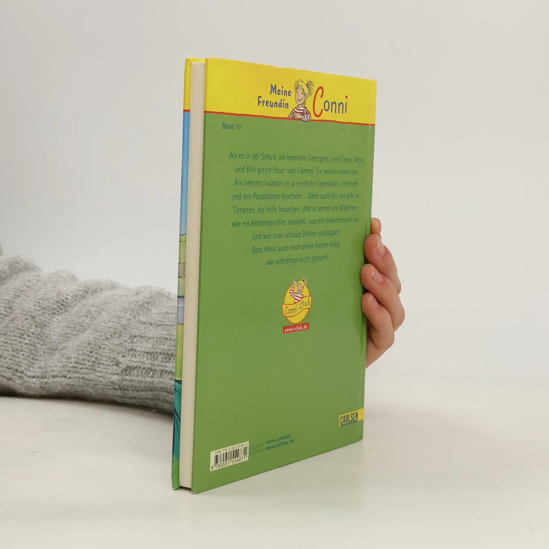 Als es in der Schule um bedrohte Tiere geht, sind Conni, Anna und Billi gleich Feuer und Flamme. Sie wollen etwas tun. Am liebsten würden sie ja niedliche Tigerbabys streicheln und mit Pandabären kuscheln ... Doch auch bei uns gibt es Tierarten, die Hilfe brauchen. Und so lernen die Mädchen, wie ein Krötenparadies aussieht, was ein Insektenhotel ist und wie man schlaue Dohlen aufpäppelt. Dass Anna auch noch einen Frosch küsst, war allerdings nicht gepant!