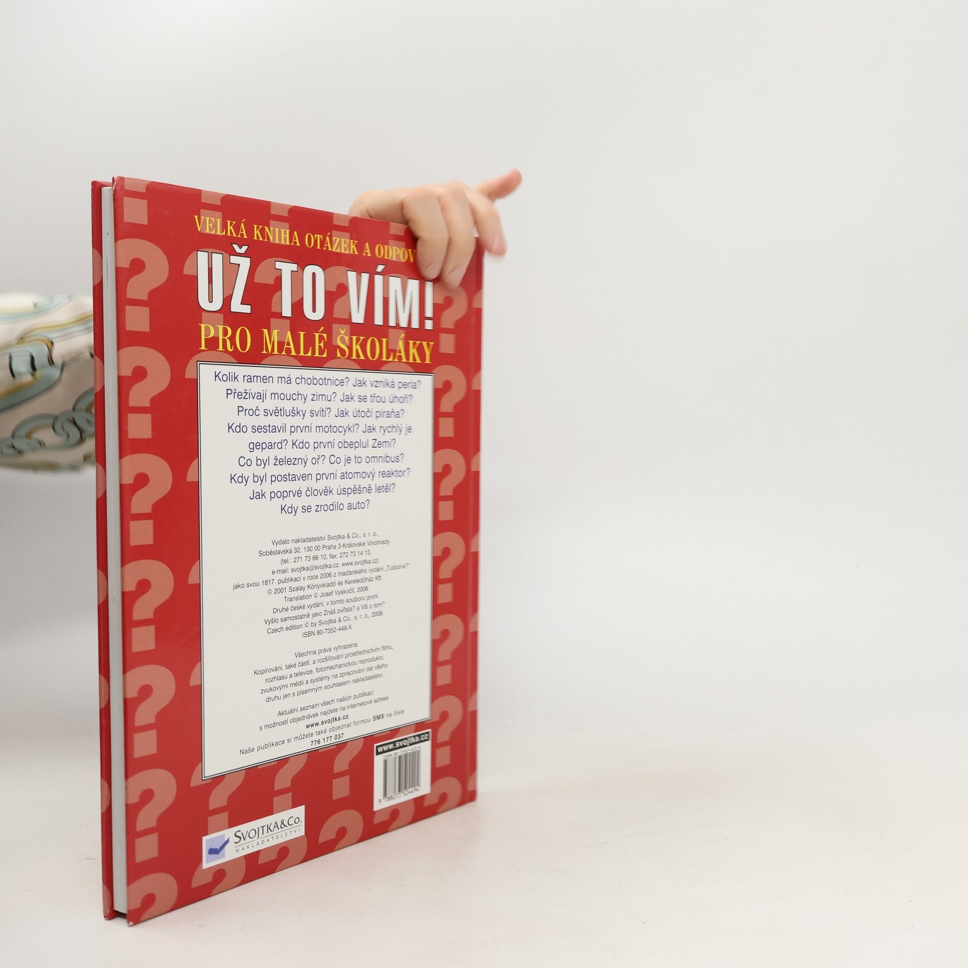 Kolik ramen má chobotnice? Jak vzniká perla? Přežívají mouchy zimu? Jak se třou úhoři? Proč světlušky svítí? Otázky a odpovědi na mnoho témat - zvířata, počátky techniky, doprava, energie, komunikace.