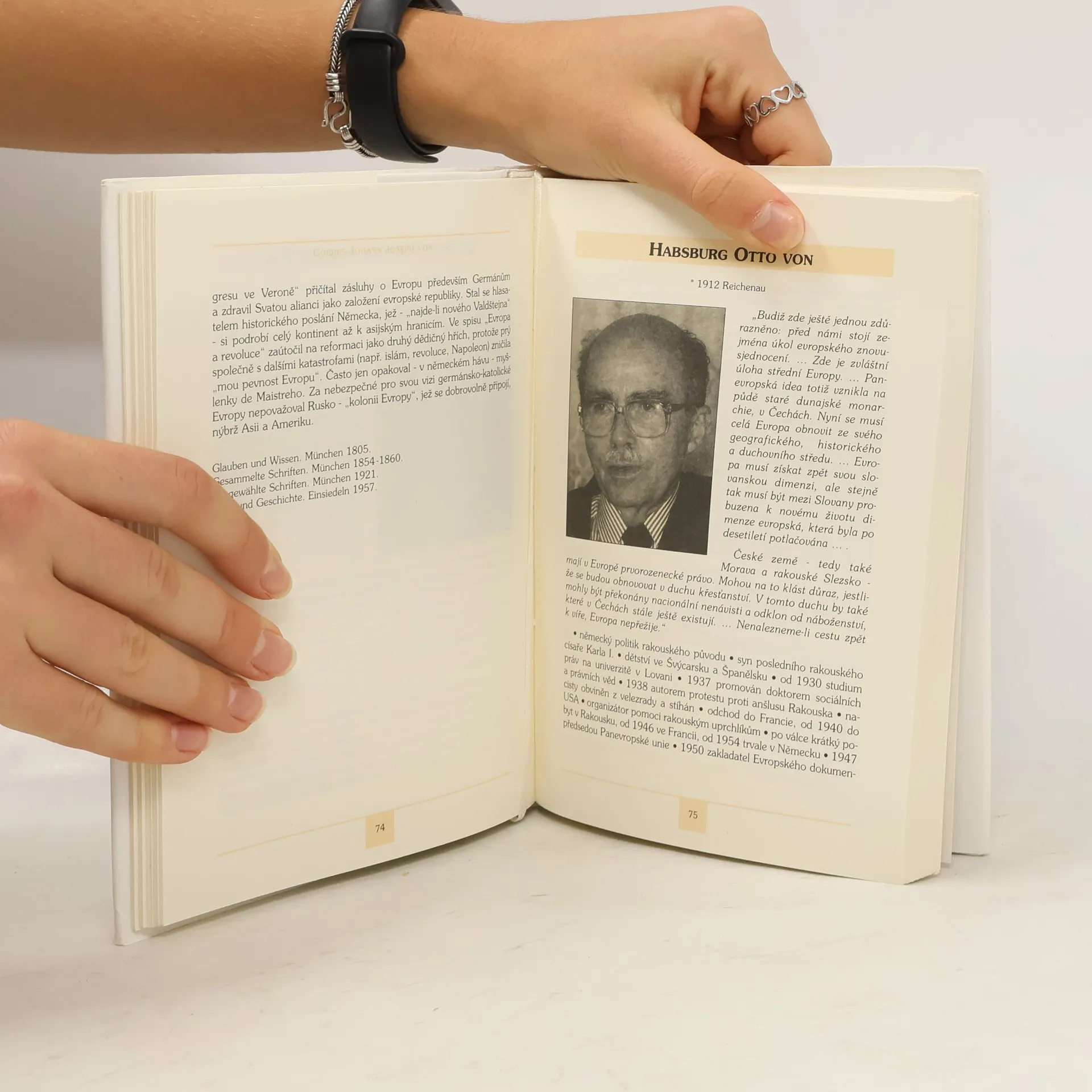 Abecedně řazené medailonky evropských filozofů, politiků i spisovatelů působících zejména v 19. a 20. století. Výběr osobností je veden myšlenkou jednotné Evropy. Každý životopis je uveden citátem z díla dané osobnosti. Dále obsahuje základní data - omezená pouze na letopočty - heslovitou charakteristiku životní dráhy, podobiznu a přehled nejdůležitějších prací, které tato osobnost publikovala.