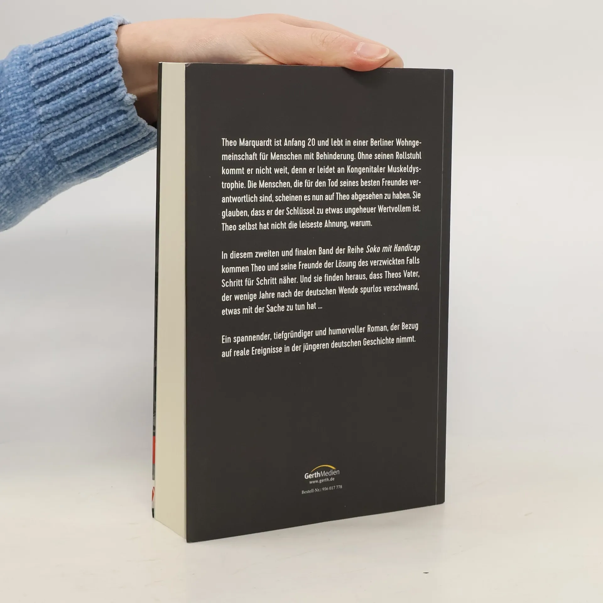 Theo Marquardt ist auf den Rollstuhl angewiesen, da er an Kongenitaler Muskeldystrophie leidet. Er lebt in einer WG für Menschen mit Behinderung in Berlin. In diesem zweiten Band der Reihe Soko mit Handicap vermutet eine Gruppe von Kriminellen, dass Theo der Schlüssel zu etwas ungeheuer Wertvollem ist. Theo selbst hat nicht die leiseste Ahnung, warum. Doch dann finden er und seine Schwester heraus, dass ihr Vater, der wenige Jahre nach der Wende spurlos verschwand, etwas mit der Sache zu tun hat. Theo ist ein weiteres Mal auf die Hilfe seiner Mitbewohner angewiesen, um Unheil abzuwenden … Ein spannender, tiefgründiger und wunderbar humorvoller Roman, der Bezug auf reale Ereignisse in der jüngeren deutschen Geschichte nimmt.