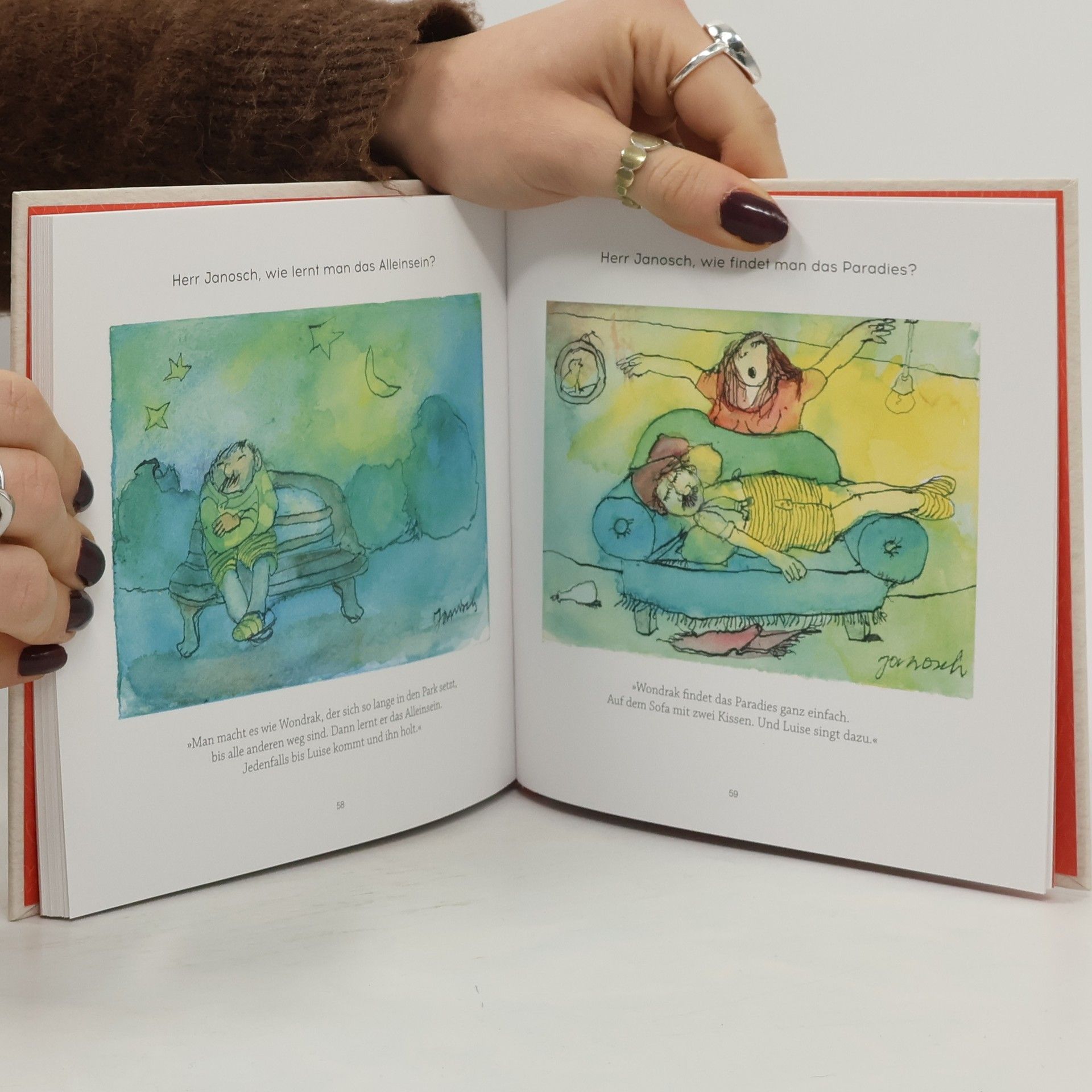 Wie wird man glücklich und wo findet man die Liebe? Auf solche und viele andere große Fragen weiß keiner eine bessere Antwort als Herr Wondrak. Er ist der Held der Erwachsenenwelt, den Janosch von 2013 bis 2019 für die Leser*innen des »ZEITmagazins« entworfen hat. Dieses herzerwärmende Geschenkbuch vereint die besten Zeichnungen mit ihren humorvollen Fragen und Antworten rund um das Thema Liebe und Leben – ein einzigartiges Geschenk für einen geliebten Menschen.