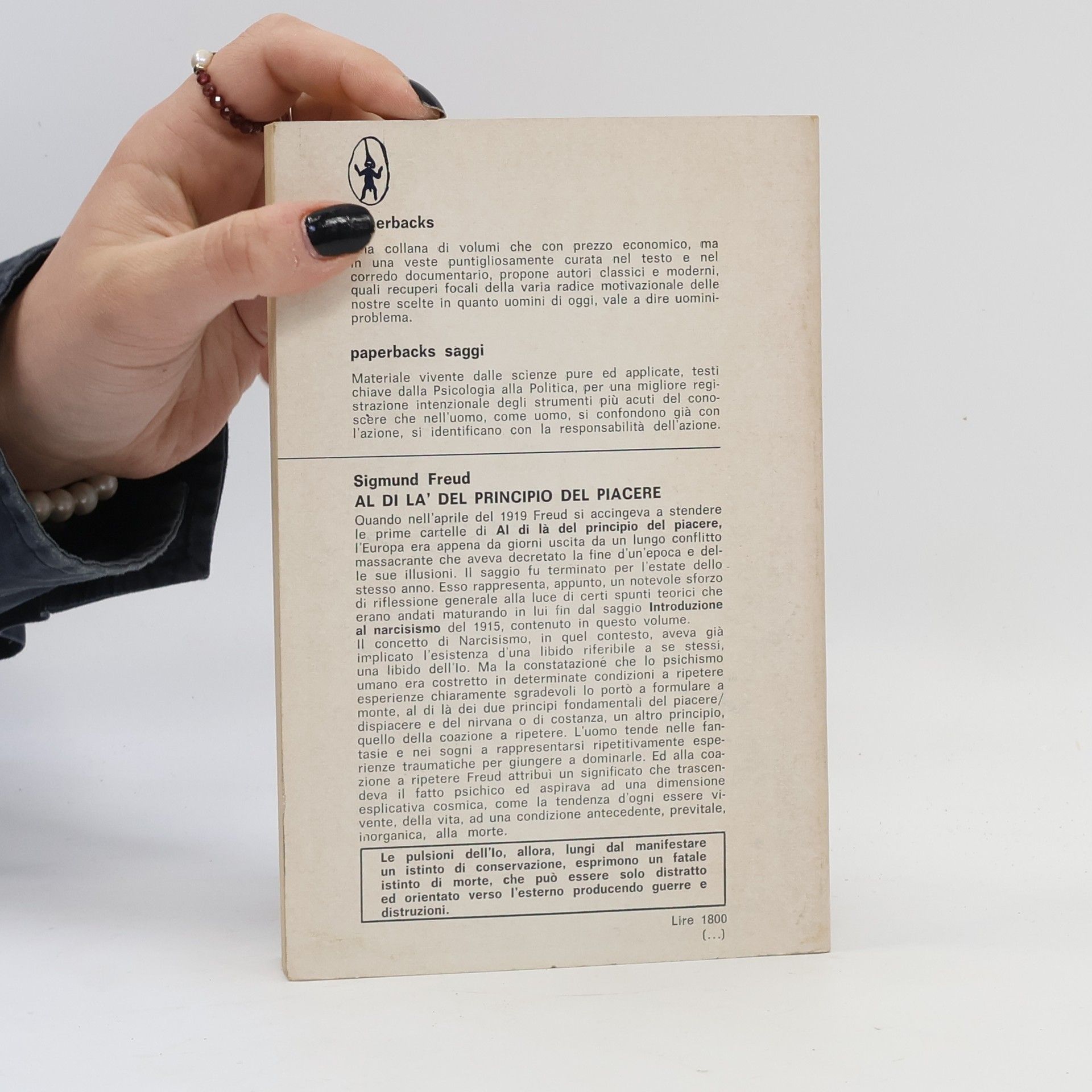Quando, nell’aprile del 1919, Freud si accingeva a stendere le prime cartelle di Al di là del principio del piacere, l’Europa era appena uscita da un conflitto che aveva decretato la fine di un’epoca. Un lungo periodo di quattro anni che era stato segnato anche per Freud da sacrifici e preoccupazioni familiari. Terminata nell’estate dello stesso anno, quest’opera rappresenta un notevole sforzo di riflessione alla luce di certi spunti teorici emersi in passato e che ora richiedevano una ricomposizione generale. Nel 1915, con Introduzione al narcissismo, Freud aveva già postulato l’esistenza di una libido riferibile a se stessi. Ma la constatazione che lo psichismo umano era costretto in determinate condizioni a ripetere esperienze chiaramente sgradevoli lo portò a formulare, al di là dei due principi fondamentali del piacere e di costanza, un terzo principio, quello della coazione a ripetere: l’uomo tenderebbe, dunque, nei sogni e nelle fantasie nevrotiche a rapprensentarsi esperienze traumatiche già vissute. Alla coazione a ripetere, ennesima pulsione dell’io, Freud attribuì un significato che trascendeva il puro fatto psichico e aspirava a una dimensione esplicativa cosmica.