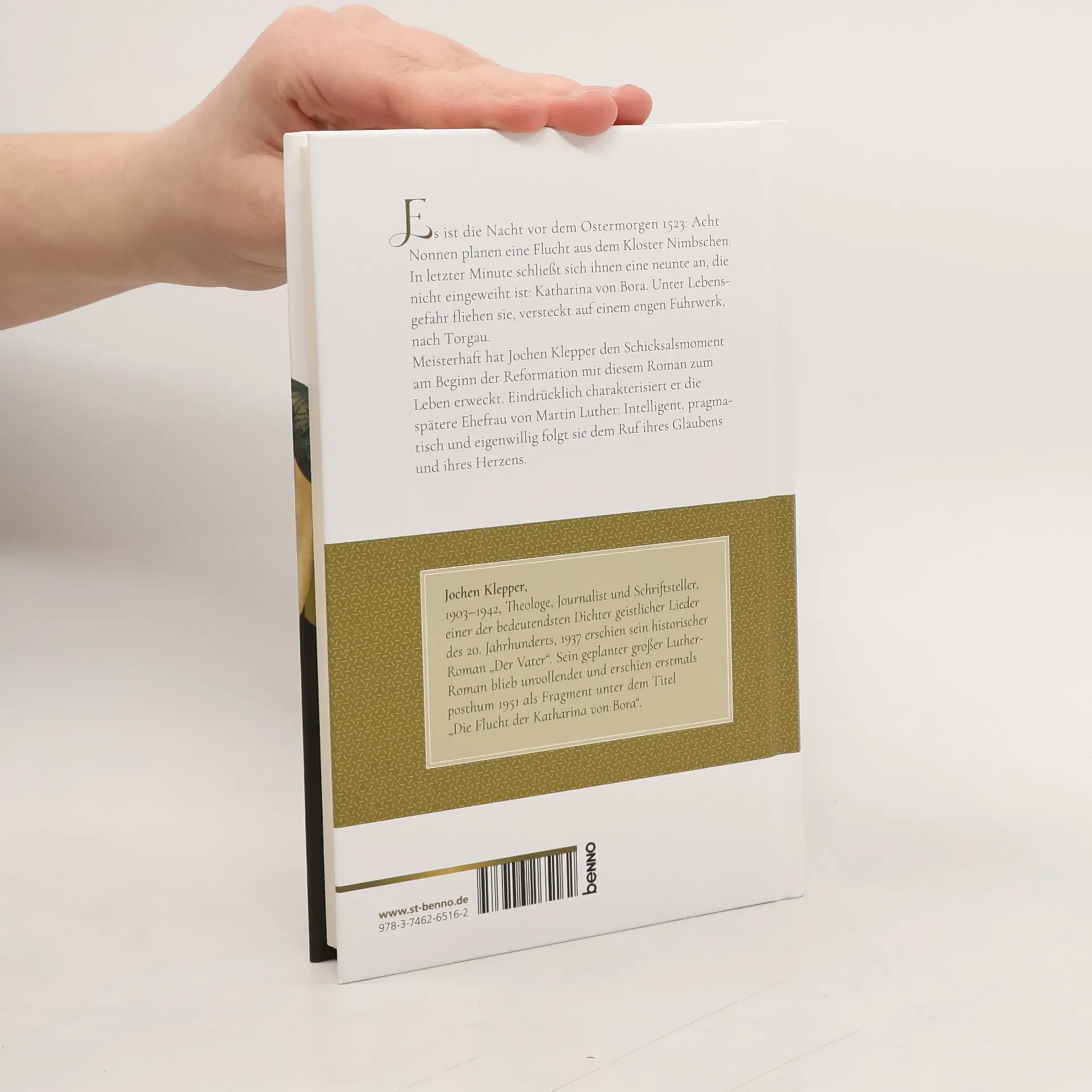 Es ist die Nacht vor dem Ostermorgen 1523: Acht Nonnen planen eine Flucht aus dem Kloster Nimbschen. In letzter Minute schließt sich ihnen eine neunte an, die nicht eingeweiht ist: Katharina von Bora. Unter Lebensgefahr fliehen sie, versteckt auf einem engen Fuhrwerk, nach Torgau. Meisterhaft hat Jochen Klepper den Schicksalsmoment am Beginn der Reformation in diesem Roman zum Leben erweckt. Eindrücklich charakterisiert er die spätere Ehefrau von Martin Luther: intelligent, pragmatisch und eigenwillig folgt sie dem Ruf ihres Glaubens und ihres Herzens. • zu Katharina von Boras 525. Geburtstag am 29. Januar • mit einem Vorwort von Jürgen Werth • zahlreiche Bilder von den Lebensstationen der Katharina von Bora