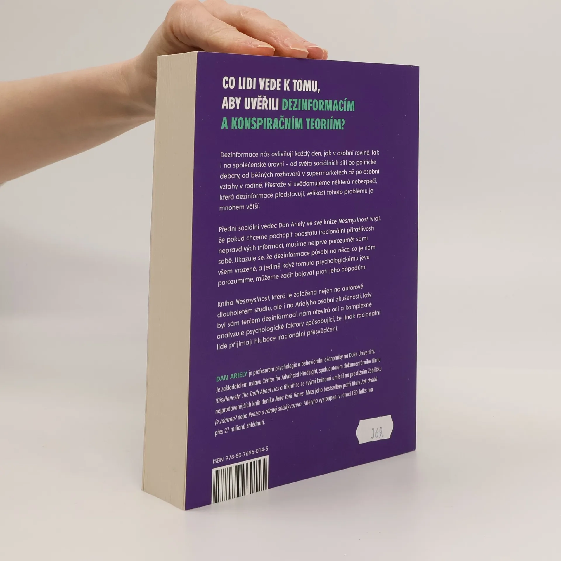 Co lidi vede k tomu, aby uvěřili dezinformacím a konspiračním teoriím? Dezinformace nás ovlivňují každý den, jak v osobní rovině, tak i na společenské úrovni – od světa sociálních sítí po politické debaty, od běžných rozhovorů v supermarketech až po osobní vztahy v rodině. Přestože si uvědomujeme některá nebezpečí, která dezinformace představují, velikost tohoto problému je mnohem větší. Přední sociální vědec Dan Ariely ve své knize Nesmyslnost tvrdí, že pokud chceme pochopit podstatu iracionální přitažlivosti nepravdivých informací, musíme nejprve porozumět problému. Ukazuje se, že dezinformace působí na něco, co je nám všem vrozené – ať už politicky stojíme na pravém nebo levém křídle –, a jedině když tomuto psychologickému jevu porozumíme, můžeme začít bojovat proti jeho dopadům. Kniha Nesmyslnost, která je založena nejen na autorově dlouholetém studiu, ale i na Arielyho osobní zkušenosti, kdy byl sám terčem dezinformací, nám otevírá oči a komplexně analyzuje psychologické faktory způsobující, že jinak racionální lidé přijímají hluboce iracionální přesvědčení. Autor bestselleru Jak drahé je zdarma?