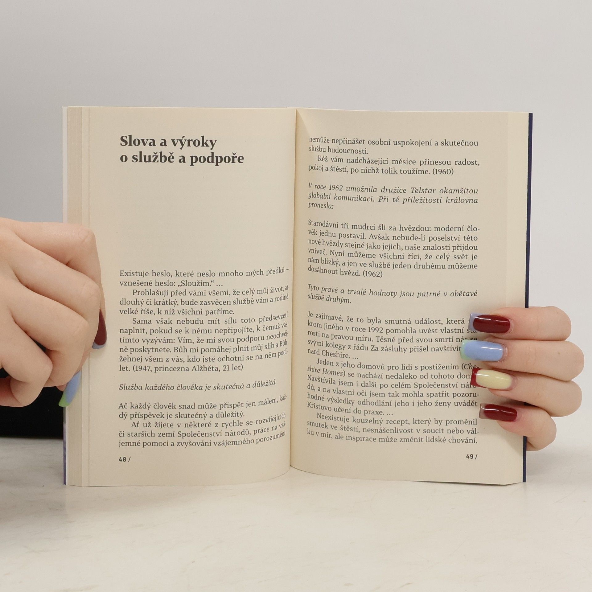 Sbírka nejpoutavějších výroků královny Alžběty II. o víře čerpá z jejích každoročních vánočních poselství i z velikonočního poselství o covidové uzávěře v roce 2020. Je rozčleněna do deseti oddílů podle klíčových témat: osoba Ježíše Krista; služba a podpora; mír a dobrá vůle; víra a naděje; světlo a život; pravda a odvaha; láska; péče a soucit; odpuštění a smíření; úcta a tolerance. Kristův život a učení byl pro královnu vždy inspirací a oporou: „Ježíš vztahoval ruce v lásce, přijetí a uzdravení, stal se vzorem smíření a odpuštění. Jeho příklad mě naučil, že mám respektovat a vážit si všech lidí…“ Boží láska je určena všem, nikdo není mimo její dosah, ani ti, které většina společnosti odsouvá na okraj. Ježíš je středem a hlavním důvodem radosti křesťanů, ale víru je třeba vyjadřovat skutky. „Jádrem křesťanské víry je odpuštění, které dokáže uzdravit rozvrácené rodiny, obnovit přátelství a usmířit rozdělená společenství,“ zdůrazňuje královna Alžběta II.