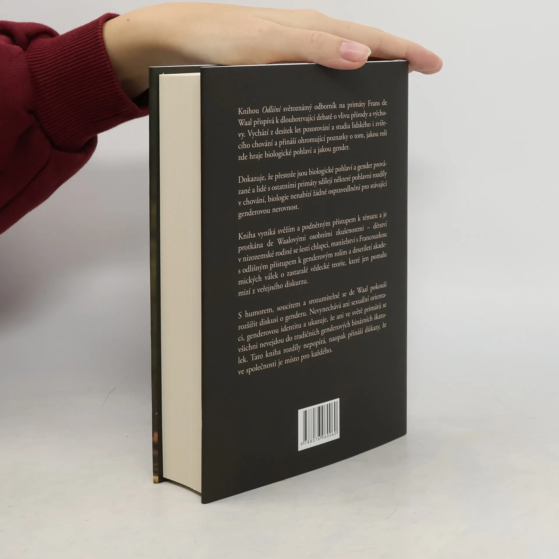 Knihou Odlišní světoznámý odborník na primáty Frans de Waal přispívá k dlouhotrvající debatě o vlivu přírody a výchovy. Vychází z desítek let pozorování a studia lidského i zvířecího chování a přináší ohromující poznatky o tom, jakou roli zde hraje biologické pohlaví a jakou gender. Dokazuje, že přestože jsou biologické pohlaví a gender provázané a lidé s ostatními primáty sdílejí některé pohlavní rozdíly v chování, biologie nenabízí žádné ospravedlnění pro stávající genderovou nerovnost. Kniha vyniká svěžím a podnětným přístupem k tématu a je protkána de Waalovymi osobními zkušenostmi – dětství v nizozemské rodině se šesti chlapci, manželství s Francouzkou s odlišným přístupem k genderovym rolím a desetiletí akademických válek o zastaralé vědecké teorie, které jen pomalu mizí z veřejného diskurzu. S humorem, soucitem a srozumitelně se de Waal pokouší rozšířit diskusi o genderu. Nevynechává ani sexuální orientaci, genderovou identitu a ukazuje, že ani ve světě primátů se všichni nevejdou do tradičních genderovych binárních škatulek. Tato kniha rozdíly nepopírá, naopak přináší důkazy, že ve společnosti je místo pro každého.