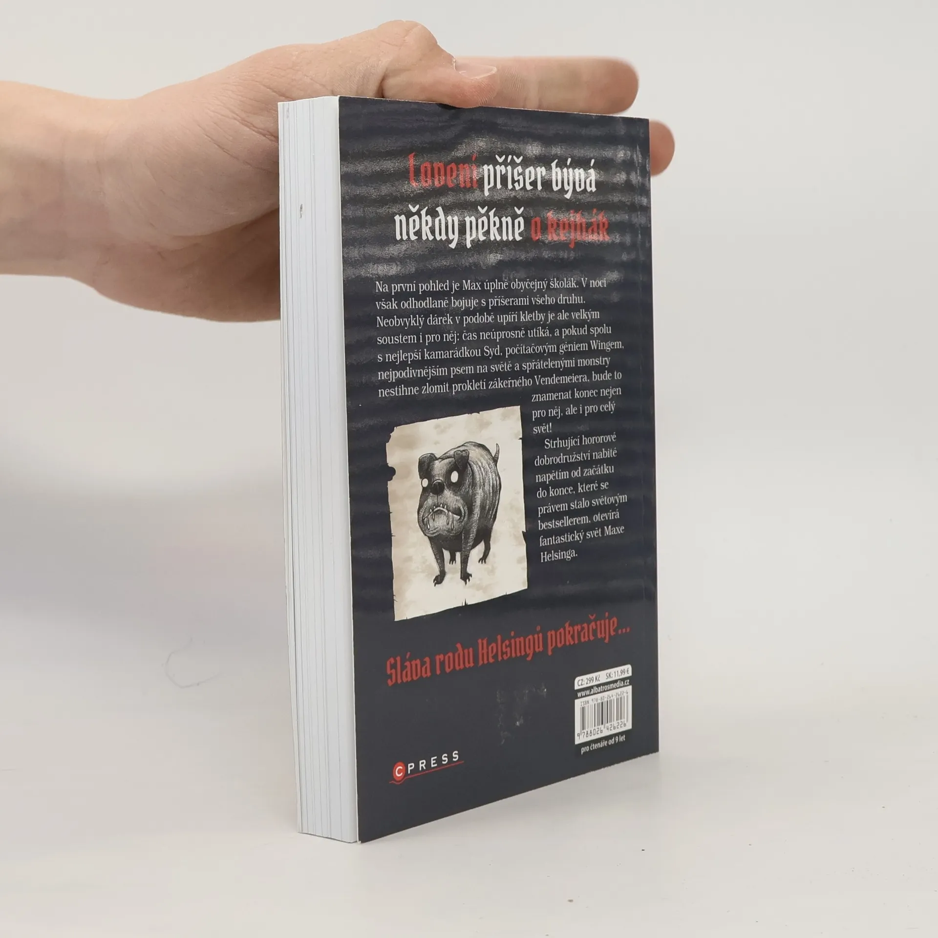 Na první pohled je Max úplně obyčejný školák. V noci však odhodlaně bojuje s příšerami všeho druhu. Neobvyklý dárek v podobě upíří kletby je ale velkým soustem i pro něj: čas neúprosně utíká, a pokud spolu s nejlepší kamarádkou Syd, počítačovým géniem Wingem, nejpodivnějším psem na světě a spřátelenými monstry nestihne zlomit prokletí zákeřného Vendemeiera, bude to znamenat konec nejen pro něj, ale i pro celý svět! Strhující hororové dobrodružství nabité napětím od začátku do konce, které se právem stalo světovým bestsellerem, otevírá fantastický svět Maxe Helsinga.