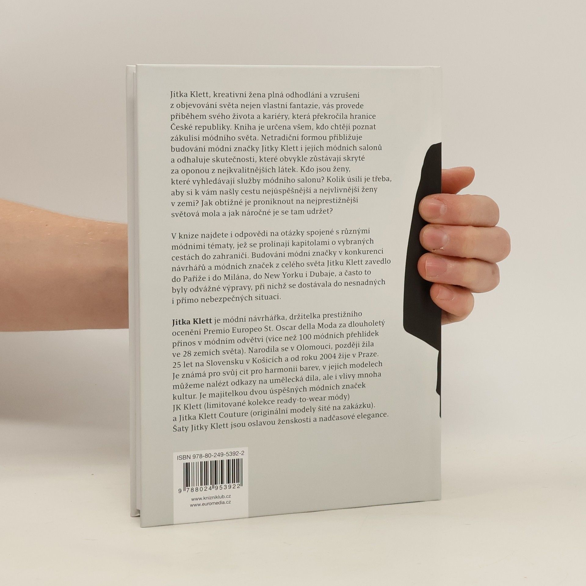 Jitka Klett, kreativní žena plná odhodlání a vzrušení z objevování světa nejen vlastní fantazie, vás provede příběhem svého života a kariéry, která překročila hranice České republiky. Kniha je určena všem, kdo chtějí poznat zákulisí módního světa. Netradiční formou přibližuje budování módní značky Jitky Klett i jejích módních salónů a odhaluje skutečnosti, které obvykle zůstávají skryté za oponou z nejkvalitnějších látek. Kdo jsou ženy, které vyhledávají služby módního salónu? Kolik úsilí je třeba, aby si k vám našly cestu nejúspěšnější a nejvlivnější ženy v zemi? Jak obtížné je proniknout na nejprestižnější světová mola a jak náročné je se tam udržet? V knize najdete i odpovědi na otázky spojené s různými módními tématy, jež se prolínají kapitolami o vybraných cestách do zahraničí. Budování módní značky v konkurenci návrhářů a módních značek z celého světa Jitku Klett zavedlo do New Yorku i do Moskvy, do Paříže i Dubaje, a často to byly odvážné výpravy, při nichž se dostávala do nesnadných i přímo nebezpečných situací.