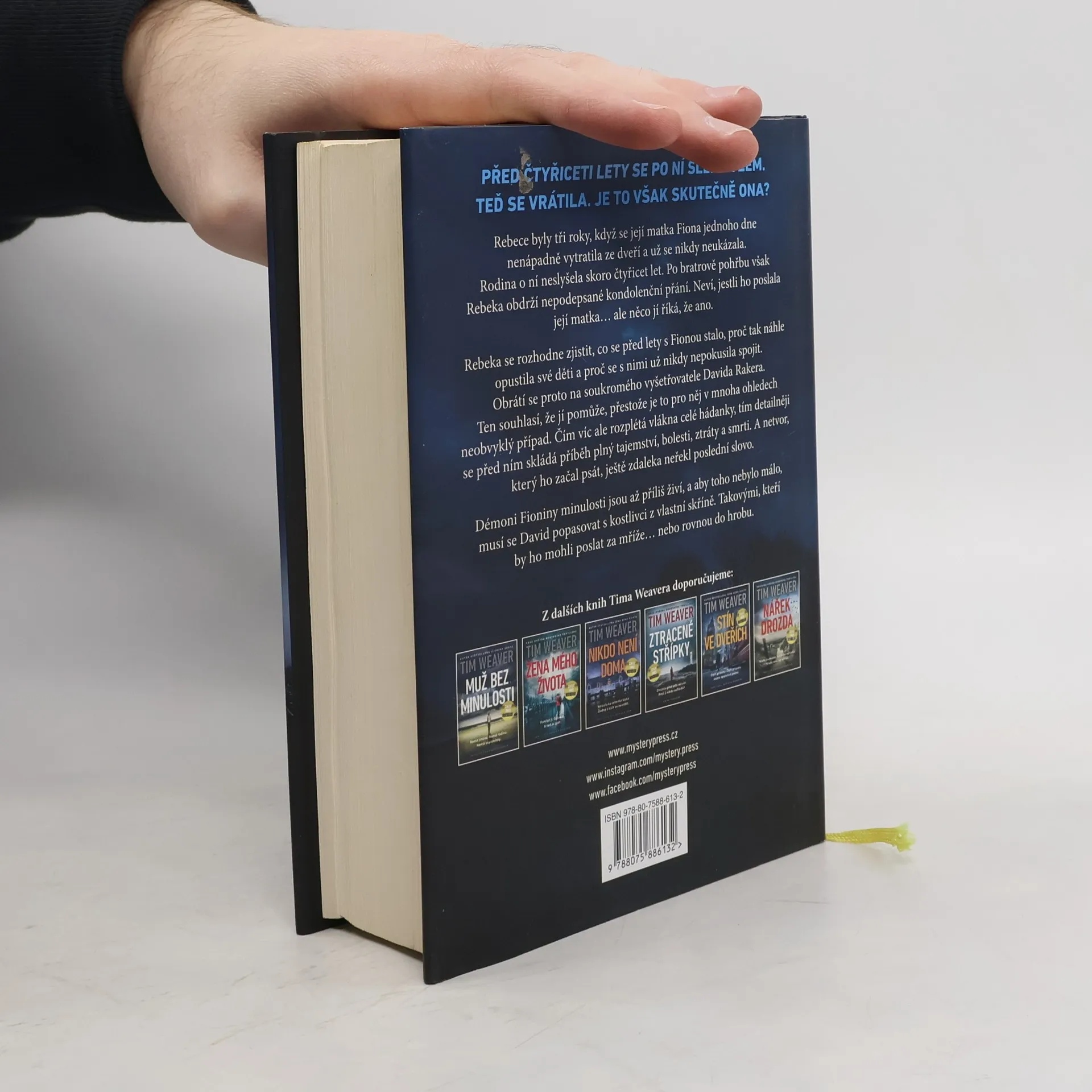 PŘED ČTYŘICETI LETY SE PO NÍ SLEHLA ZEM. TEĎ SE VRÁTILA. JE TO VŠAK SKUTEČNĚ ONA? Rebece byly tři roky, když se její matka Fiona jednoho dne nenápadně vytratila ze dveří a už se nikdy neukázala. Rodina o ní neslyšela skoro čtyřicet let. Po bratrově pohřbu však Rebeka obdrží nepodepsané kondolenční přání. Neví, jestli ho poslala její matka… ale něco jí říká, že ano. Rebeka se rozhodne zjistit, co se před lety s Fionou stalo, proč tak náhle opustila své děti a proč se s nimi už nikdy nepokusila spojit. Obrátí se proto na soukromého vyšetřovatele Davida Rakera. Ten souhlasí, že jí pomůže, přestože je to pro něj v mnoha ohledech neobvyklý případ. Čím víc ale rozplétá vlákna celé hádanky, tím detailněji se před ním skládá příběh plný tajemství, bolesti, ztráty a smrti. A netvor, který ho začal psát, ještě zdaleka neřekl poslední slovo. Démoni Fioniny minulosti jsou až příliš živí, a aby toho nebylo málo, musí se David popasovat s kostlivci z vlastní skříně. Takovými, kteří by ho mohli poslat za mříže… nebo rovnou do hrobu.
