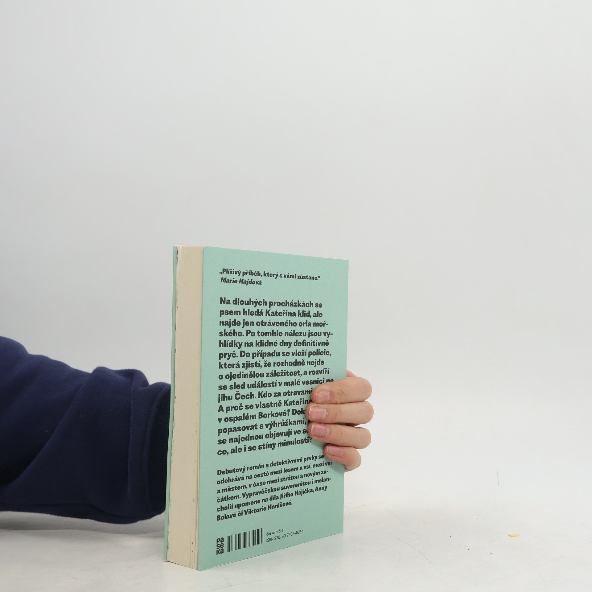Na dlouhých procházkách se psem hledá Kateřina klid, ale najde jen otráveného orla mořského. Po tomhle nálezu jsou vyhlídky na klidné dny definitivně pryč. Do případu se vloží policie, která zjistí, že rozhodně nejde o ojedinělou záležitost, a rozvíří se sled událostí v malé vesnici na jihu Čech. Kdo za otravami stojí? A proč se vlastně Kateřina ocitla v ospalém Borkově? Dokáže se popasovat s výhrůžkami, které se najednou objevují ve schránce, ale i se stíny minulosti? Debutový román s detektivními prvky se odehrává na cestě mezi lesem a vsí, mezi vsí a městem, v čase mezi ztrátou a novým začátkem. Vypravěčskou suverenitou i melancholií upomene na díla Jiřího Hájíčka, Anny Bolavé či Viktorie Hanišové.