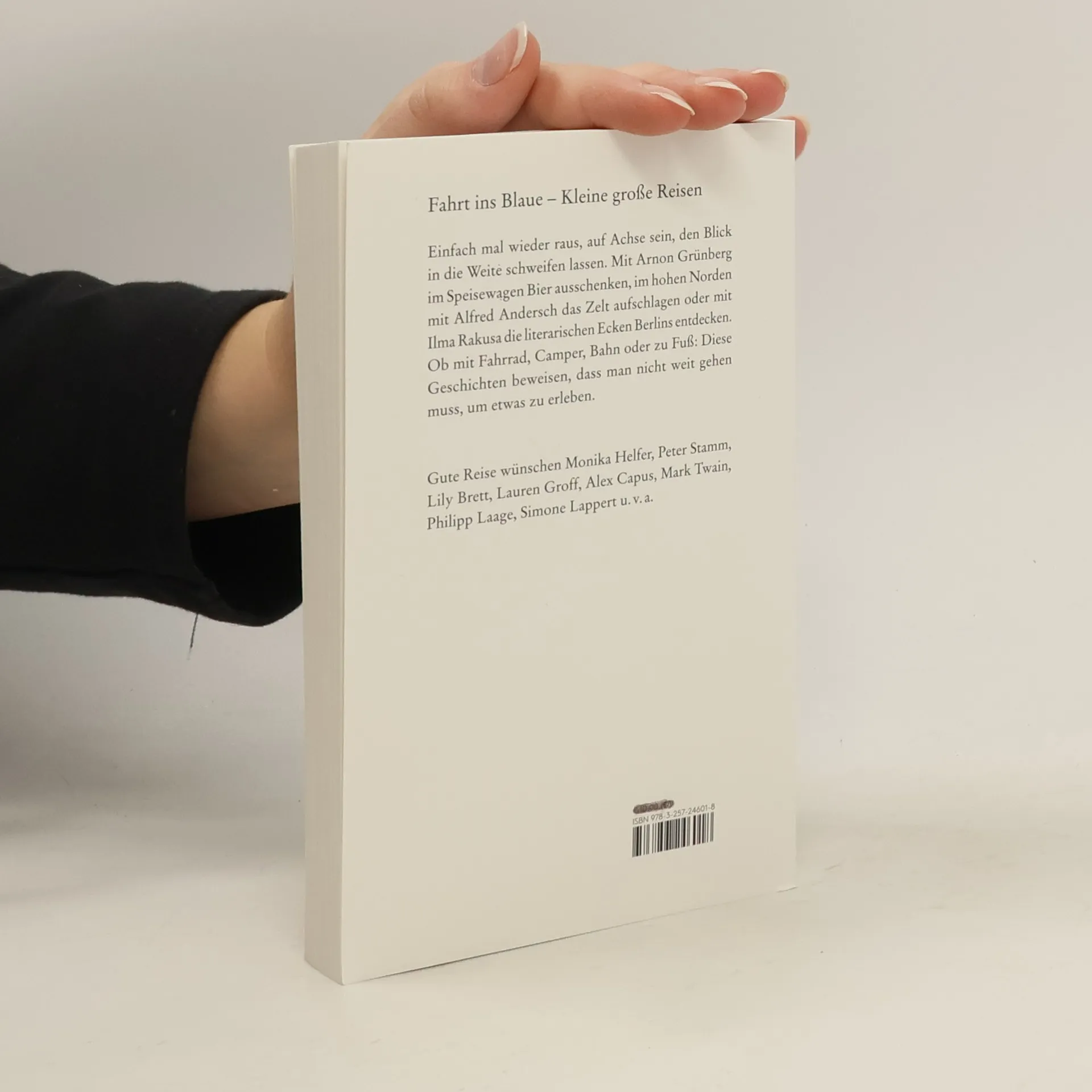 Einfach mal wieder raus, auf Achse sein, den Blick in die Weite schweifen lassen. Mit Arnon Grünberg im Speisewagen Bier ausschenken, im hohen Norden mit Alfred Andersch das Zelt aufschlagen oder mit Ilma Rakusa die literarischen Ecken Berlins entdecken. Ob mit Fahrrad, Camper, Bahn oder zu Fuß: Diese Geschichten beweisen, dass man nicht weit gehen muss, um etwas zu erleben. Gute Reise wünschen Monika Helfer, Peter Stamm, Lily Brett, Lauren Groff, Alex Capus, Mark Twain, Philipp Laage, Simone Lappert u. v. a.