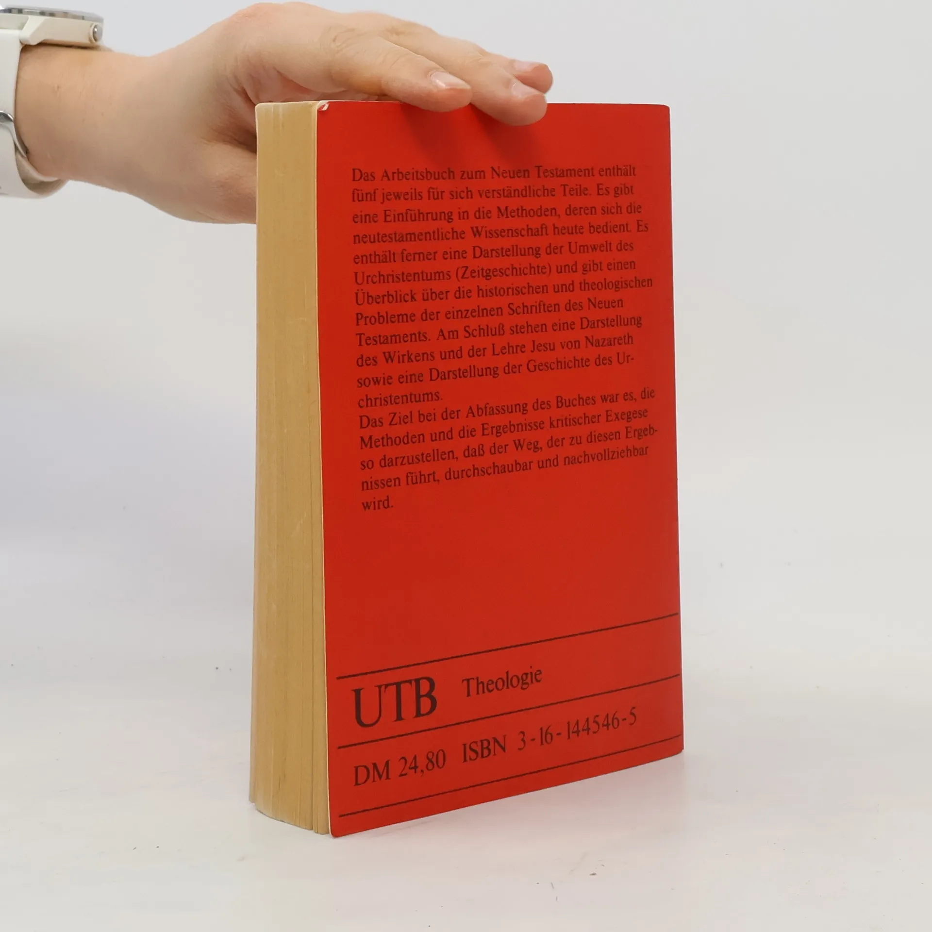Das Arbeitsbuch zum Neuen Testament enthalt funf eigenstandige Teile. Am Anfang steht die Einfuhrung in die Methoden der wissenschaftlichen Auslegung des Neuen Testaments. Der zweite und dritte Teil informieren uber die Umwelt des Urchristentums (Zeitgeschichte) und uber die historischen und theologischen Probleme der neutestamentlichen Schriften. Am Schlua stehen Darstellungen des Wirkens und der Lehre Jesu von Nazareth und der Geschichte des Urchristentums. Seit seinem erstmaligen Erscheinen 1975 wurde das Arbeitsbuch standig uberarbeitet und dem Fortgang und den Ergebnissen der wissenschaftlichen Arbeit am Neuen Testament angepaat. Unverandert gilt, daa in diesem Buch nicht aktuelle Experimente vorgestellt werden, sondern nachvollziehbare Schritte und allgemein anerkannte Ergebnisse der historischkritischen Auslegung des Neuen Testaments.