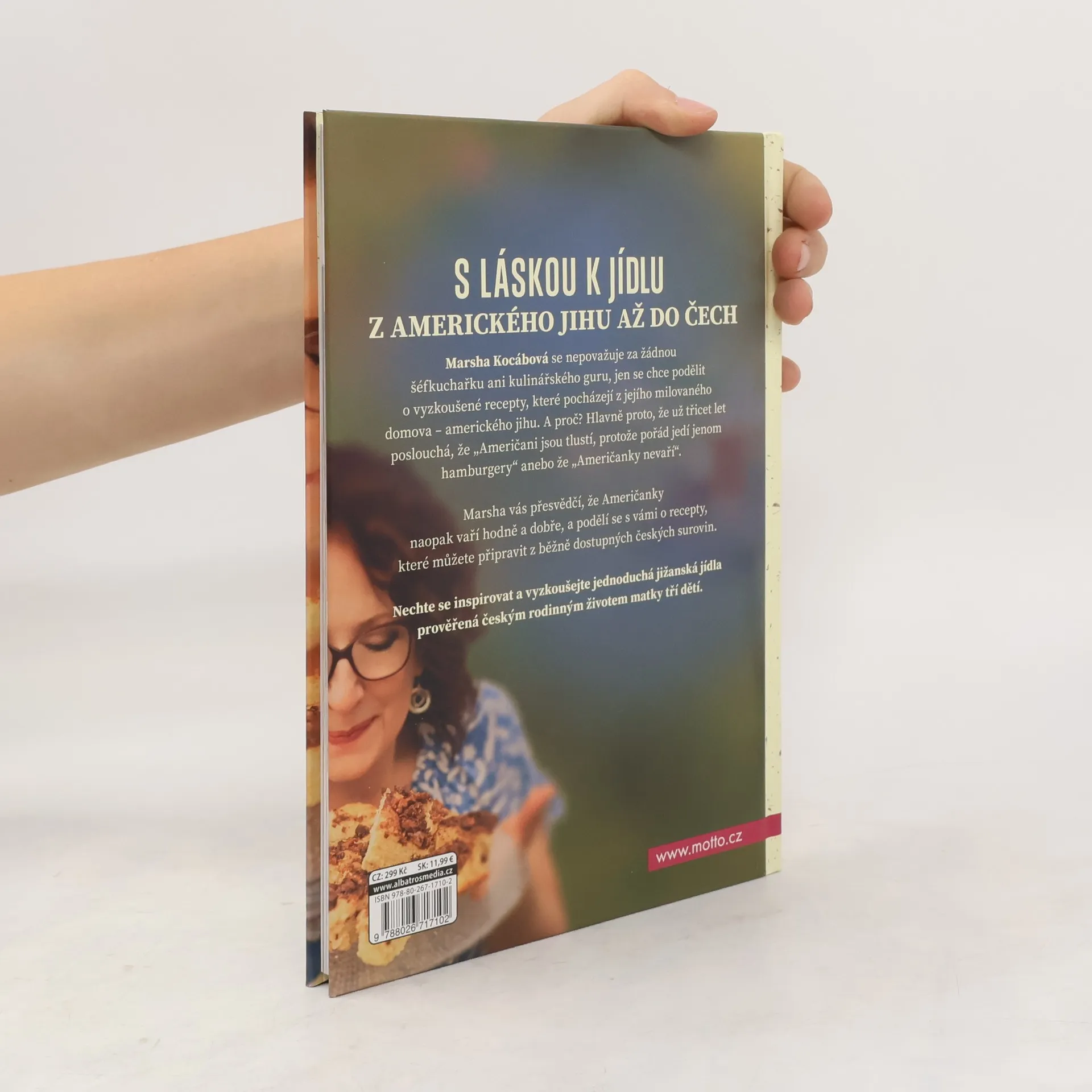 S láskou k jídlu z amerického jihu až do Čech, Marsha Kocábová se nepovažuje za žádnou šéfkuchařku ani kulinářského guru, jen se chce podělit o vyzkoušené recepty, které pocházejí z jejího milovaného domova – amerického jihu. A proč? Hlavně proto, že už třicet let poslouchá, že „Američani jsou tlustí, protože pořád jedí jenom hamburgery“ anebo že „Američanky nevaří“. Marsha vás přesvědčí, že Američanky naopak vaří hodně a dobře, a podělí se s vámi o recepty, které můžete připravit z běžně dostupných českých surovin. Nechte se inspirovat a vyzkoušejte jednoduchá jižanská jídla prověřená českým rodinným životem matky tří dětí.