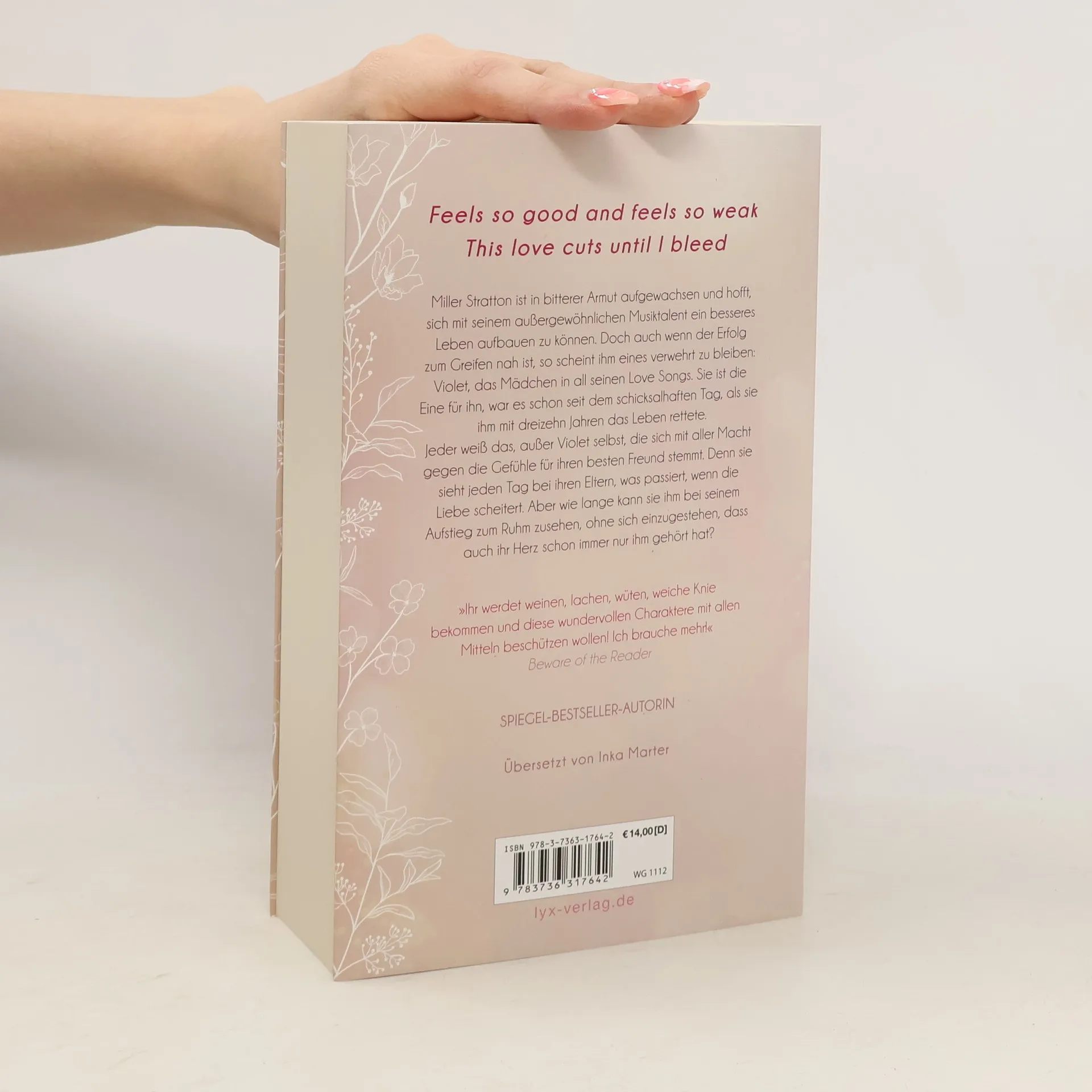 Feels so good and feels so weak This love cuts until I bleed Miller Stratton ist in bitterer Armut aufgewachsen und hofft, sich mit seinem außergewöhnlichen Musiktalent ein besseres Leben aufbauen zu können. Doch auch wenn der Erfolg zum Greifen nah ist, so scheint ihm eines verwehrt zu bleiben: Violet, das Mädchen in all seinen Love Songs. Sie ist die Eine für ihn, war es schon seit dem schicksalhaften Tag, als sie ihm mit dreizehn Jahren das Leben rettete. Jeder weiß das, außer Violet selbst, die sich mit aller Macht gegen die Gefühle für ihren besten Freund stemmt. Denn sie sieht jeden Tag bei ihren Eltern, was passiert, wenn die Liebe scheitert. Aber wie lange kann sie ihm bei seinem Aufstieg zum Ruhm zusehen, ohne sich einzugestehen, dass auch ihr Herz schon immer nur ihm gehört hat? „Ihr werdet weinen, lachen, wüten, weiche Knie bekommen und diese wundervollen Charaktere mit allen Mitteln beschützen wollen! Ich brauche mehr!“ BEWARE OF THE READER Band 1 der LOST-BOYS -Trilogie