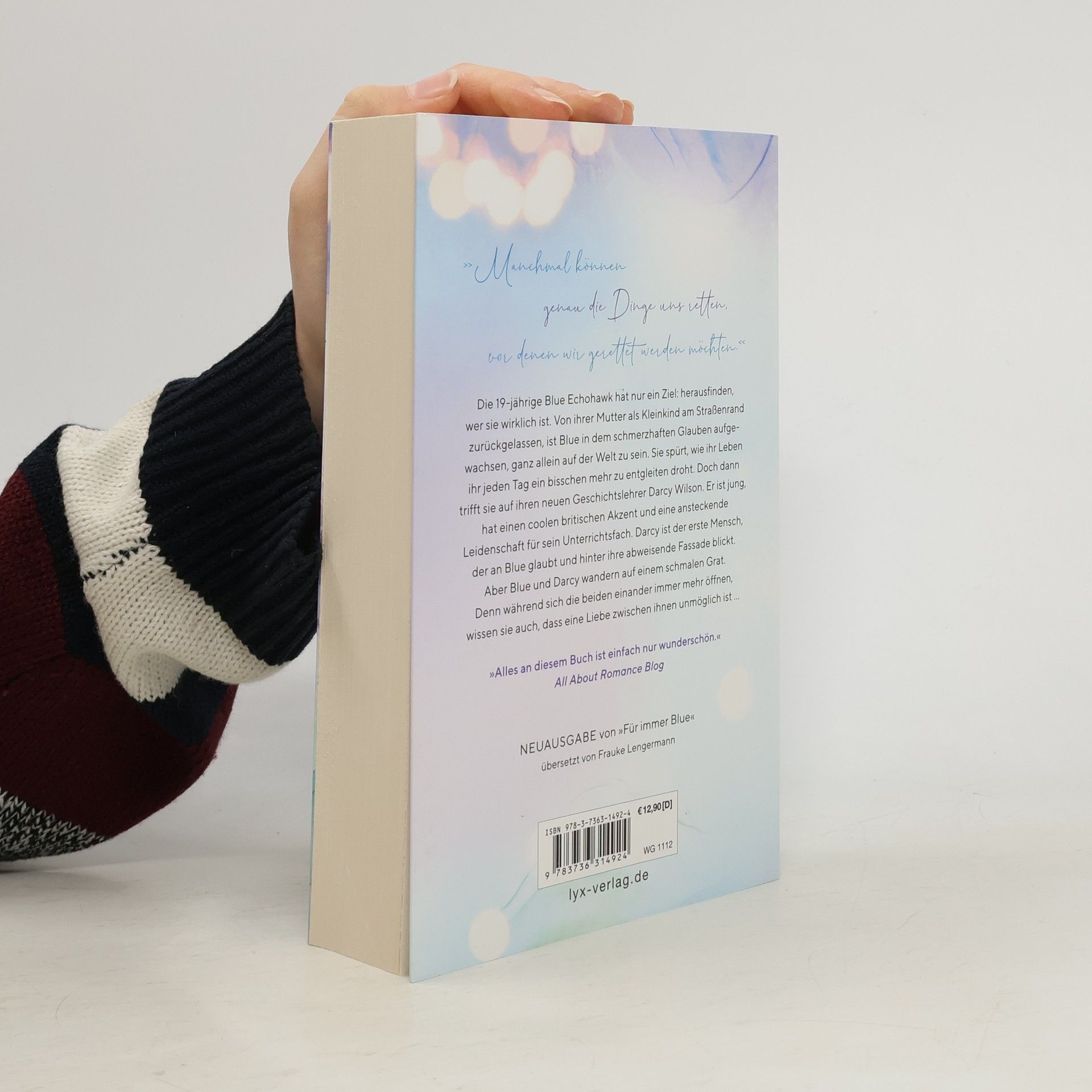 „Manchmal können genau die Dinge uns retten, vor denen wir gerettet werden möchten.“ Die 19-jährige Blue Echohawk hat nur ein Ziel: herausfinden, wer sie wirklich ist. Von ihrer Mutter als Kleinkind am Straßenrand zurückgelassen, ist Blue in dem schmerzhaften Glauben aufgewachsen, ganz allein auf der Welt zu sein. Sie spürt, wie ihr Leben ihr jeden Tag ein bisschen mehr zu entgleiten droht. Doch dann trifft sie auf ihren neuen Geschichtslehrer Darcy Wilson. Er ist jung, hat einen coolen britischen Akzent und eine ansteckende Leidenschaft für sein Unterrichtsfach. Darcy ist der erste Mensch, der an Blue glaubt und hinter ihre abweisende Fassade blickt. Aber Blue und Darcy wandern auf einem schmalen Grat. Denn während sich die beiden einander immer mehr öffnen, wissen sie auch, dass eine Liebe zwischen ihnen unmöglich ist ... „Alles an diesem Buch ist einfach nur wunderschön.“ ALL ABOUT ROMANCE BLOG Remake von FÜR IMMER BLUE