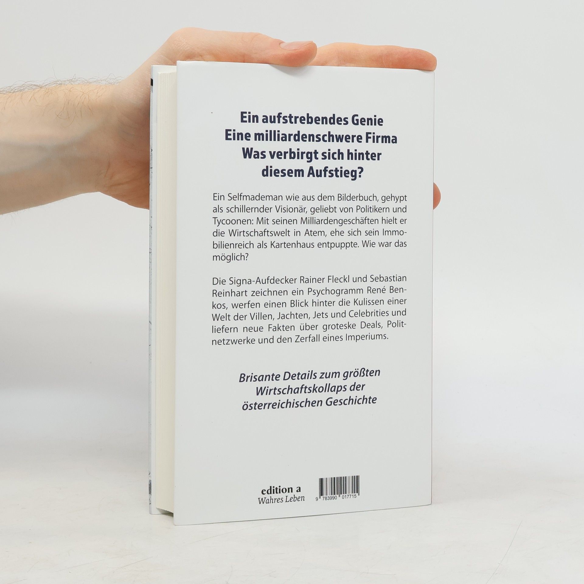 Ein Selfmademan wie aus dem Bilderbuch, gehypt als schillernder Visionär, geliebt von Politikern und Tycoonen: Mit seinen Milliardengeschäften hielt er die Wirtschaftswelt in Atem, ehe sich sein Immobilienreich als Kartenhaus entpuppte. Wie war das möglich? Die Signa-Aufdecker Rainer Fleckl und Sebastian Reinhart zeichnen ein Psychogramm René Benkos, werfen einen Blick hinter die Kulissen einer Welt der Villen, Jachten, Jets und Celebrities und liefern neue Fakten über groteske Deals, Politnetzwerke und den Zerfall eines Imperiums.