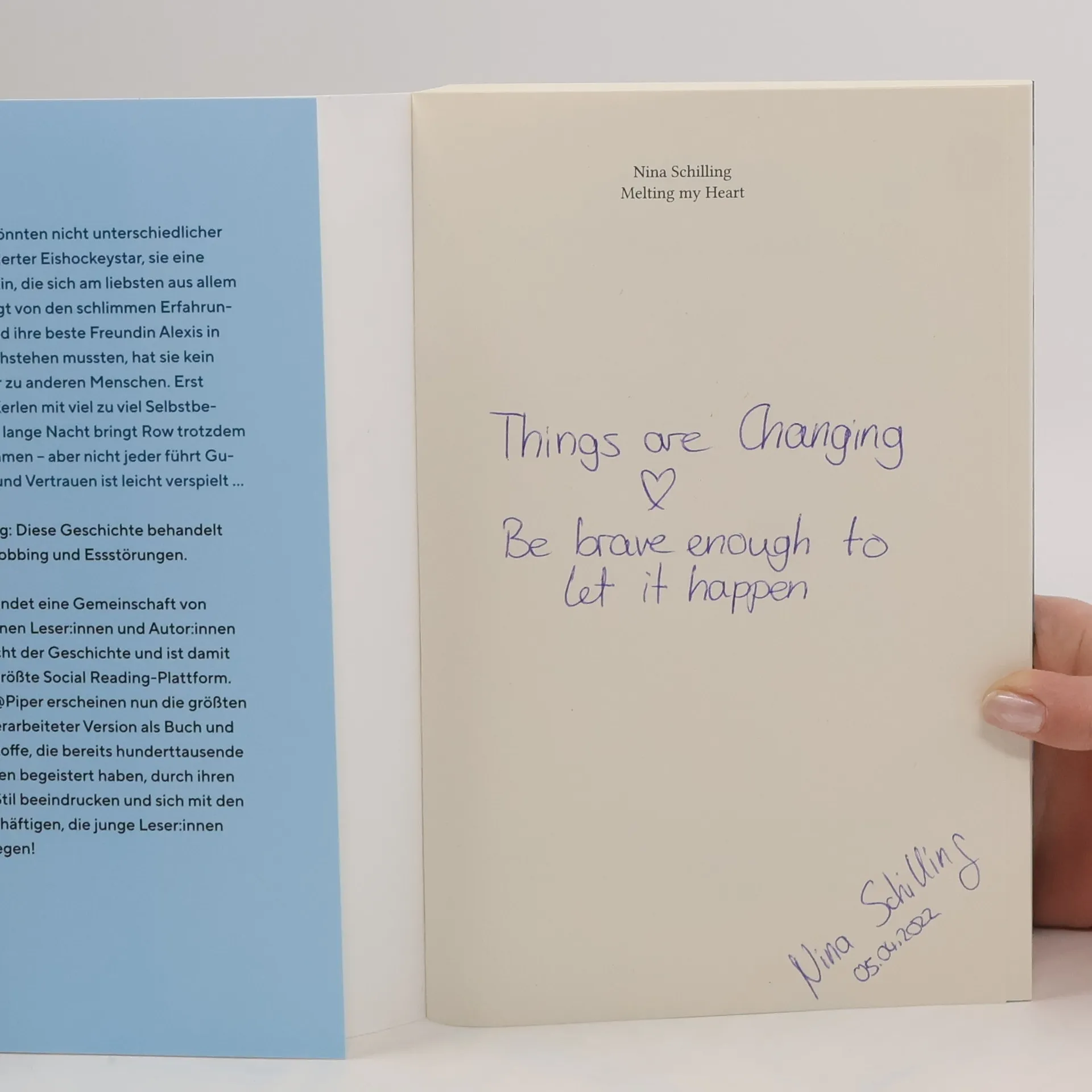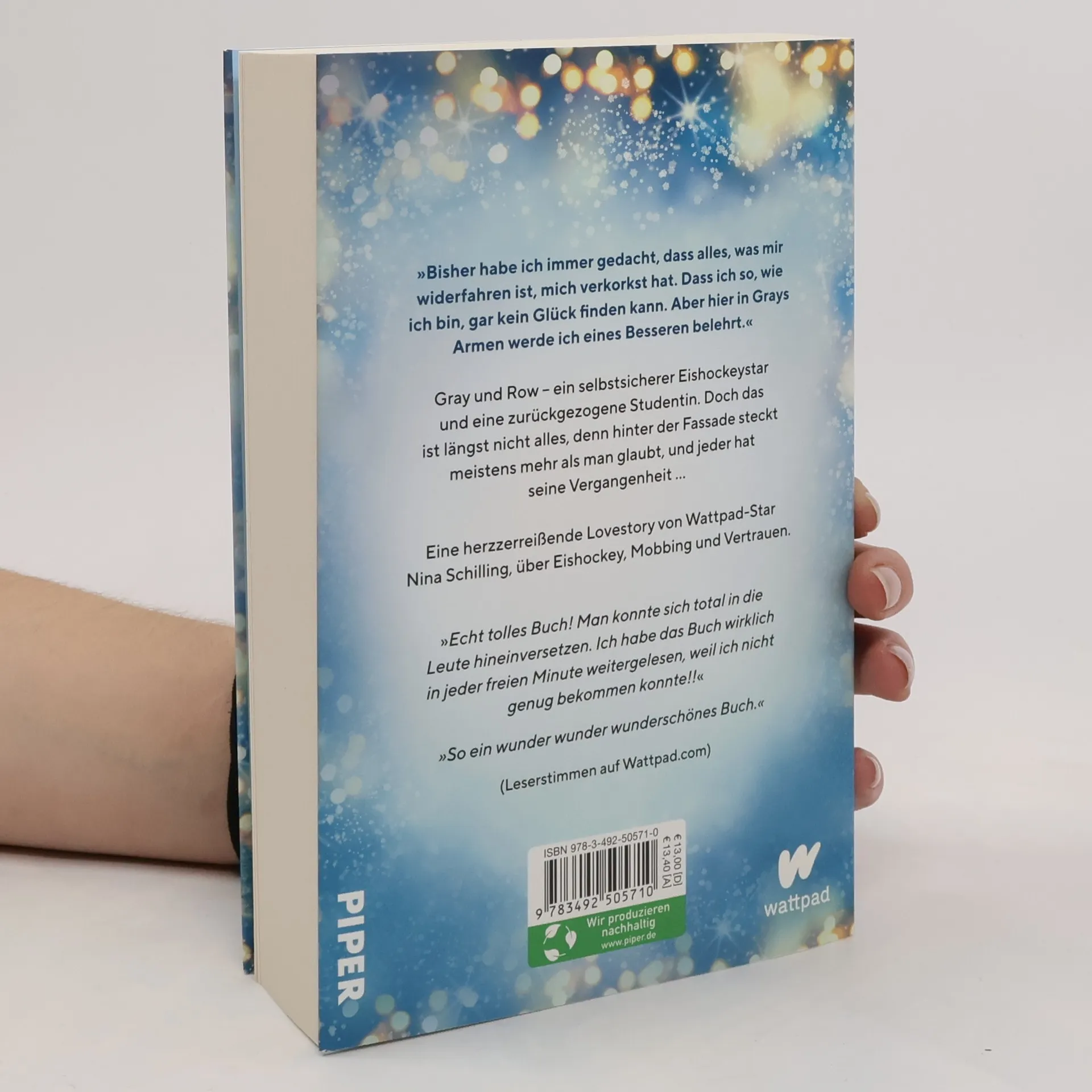 Von Eishockey, Mobbing und Vertrauen – eine herzzerreißende Lovestory von Wattpad-Star Nina SchillingGray und Row könnten nicht unterschiedlicher sein: Er ein gefeierter Eishockeystar, sie eine fleißige Studentin, die sich am liebsten aus allem raushält. Geprägt von den schlimmen Erfahrungen, die Row und ihre beste Freundin Alexis in der Schule durchstehen mussten, hat Row kein Vertrauen mehr zu anderen Menschen. Erst recht nicht zu Kerlen mit viel zu viel Selbstvertrauen. Eine lange Nacht bringt Row trotzdem mit Gray zusammen – doch was passiert, wenn alle Mauern fallen gelassen werden?