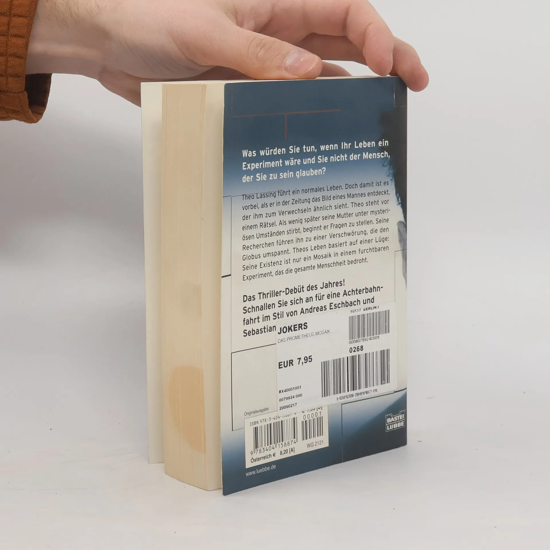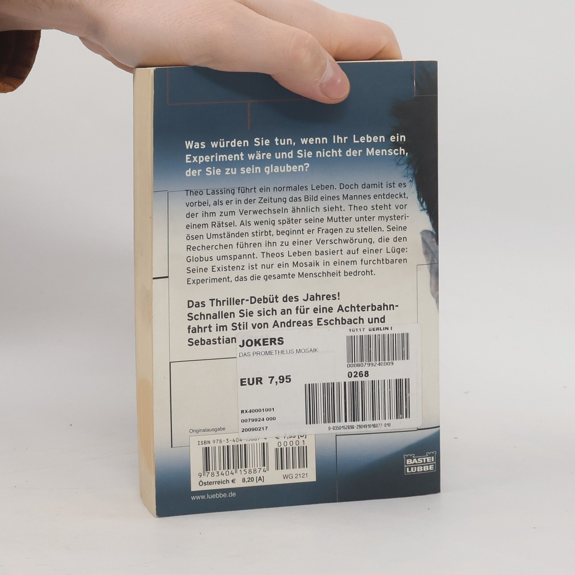 Theo Lassing führt ein normales Leben. Doch damit ist es vorbei, als er in der Zeitung das Bild eines Mannes entdeckt, der ihm zum Verwechseln ähnlich sieht. Theo steht vor einem Rätsel. Als wenig später seine Mutter unter mysteriösen Umständen stirbt, beginnt er Fragen zu stellen. Seine Recherchen führen ihn zu einer Verschwörung, die den Globus umspannt. Theos Leben basiert auf einer Lüge: Seine Existenz ist nur ein Mosaik in einem furchtbaren Experiment, das die gesamte Menschheit bedroht. Schnallen Sie sich an für eine Achterbahnfahrt im Stil von Andreas Eschbach und Sebastian Fitzek.