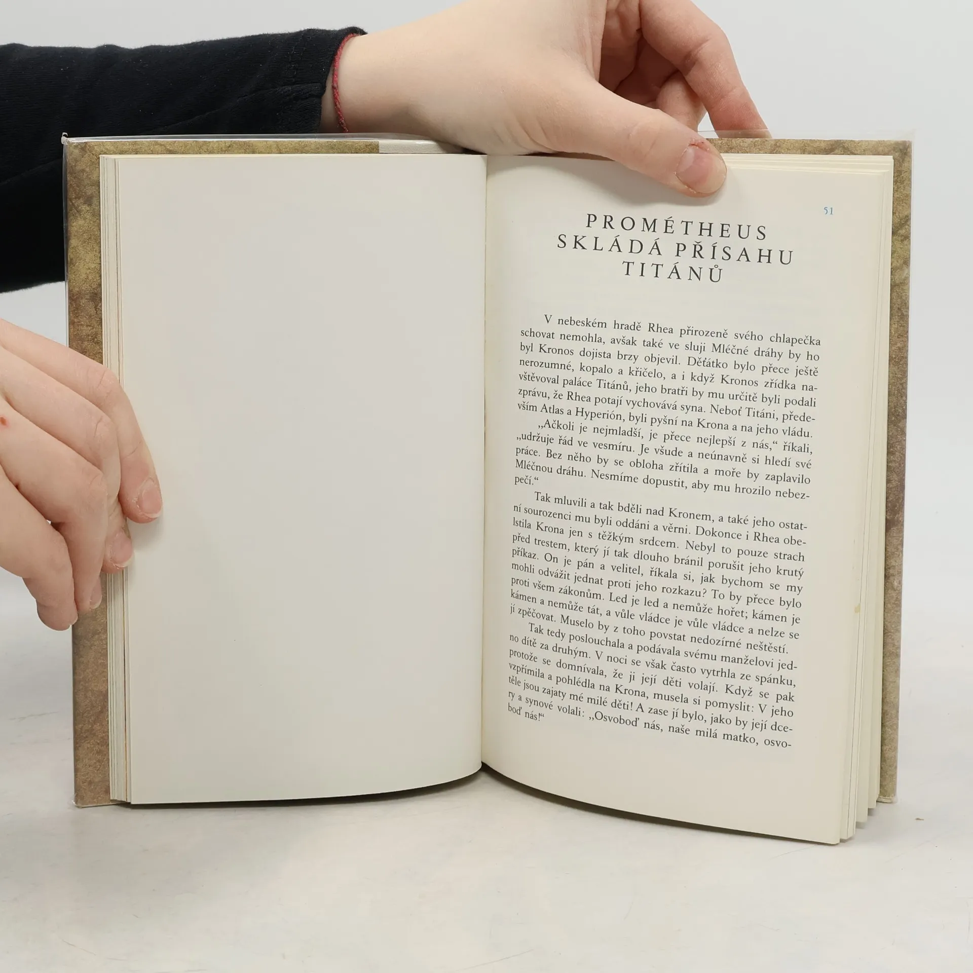 Dramatické převyprávění staré řecké báje o vzniku světa, o vláďe Titánů, o boji vládce Krona s jeho dětmi, o vítězství Dia a jeho založení nové říše pod vládou olympských bohů. Titán Prométheus, obdařený babičkou Zemí darem vidění, jako protest proti nudnému životu nesmrtelných božstev tvoří činorodého člověka.