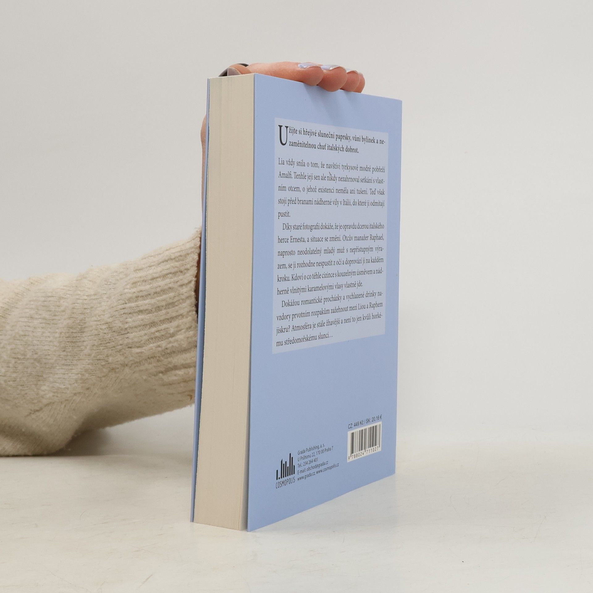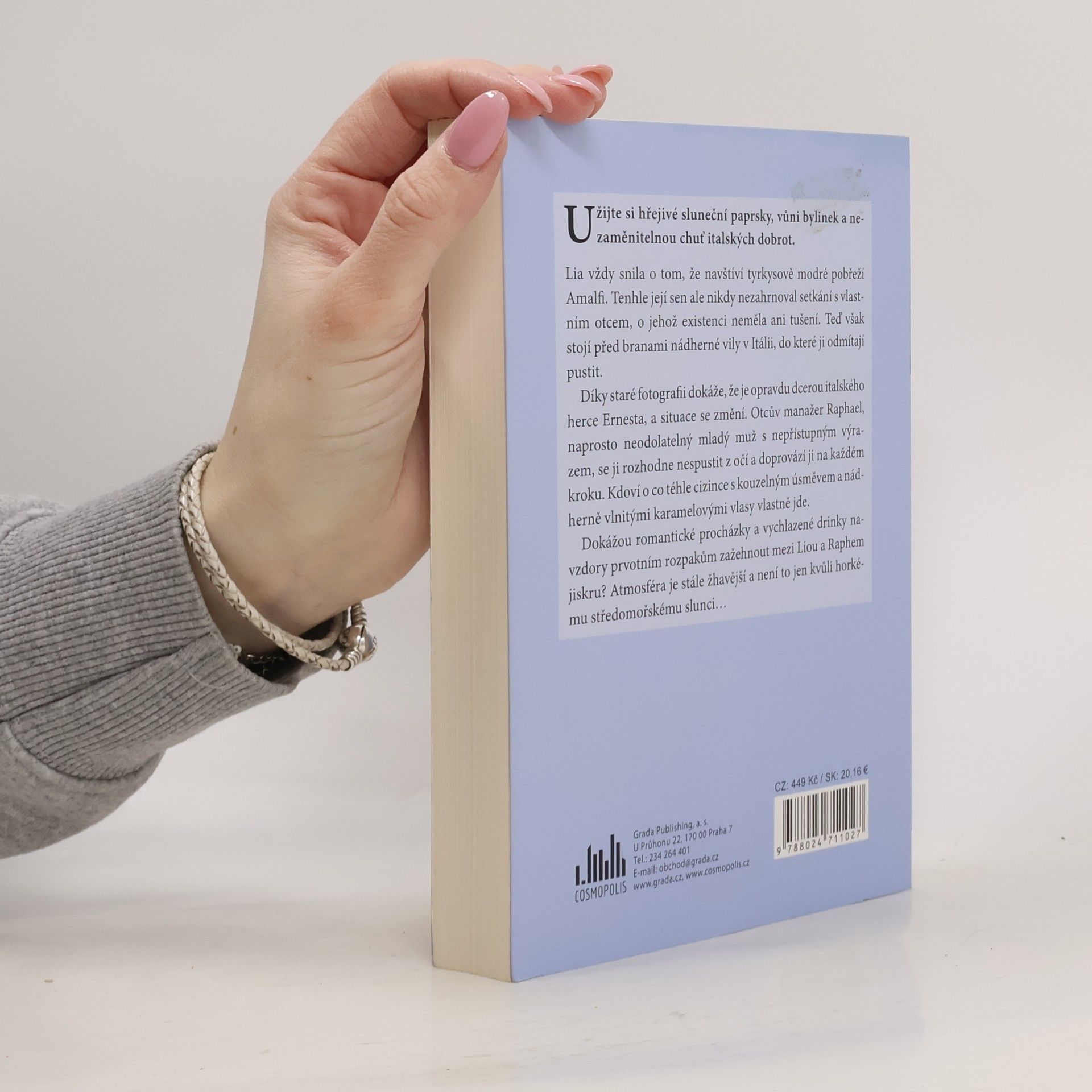 Lia vždy snila o tom, že navštíví tyrkysově modré pobřeží Amalfi. Tenhle její sen ale nikdy nezahrnoval setkání s vlastním otcem, o jehož existenci neměla ani tušení. Teď však stojí před branami nádherné vily v Itálii, do které ji odmítají pustit. Díky staré fotografii dokáže,že je opravdu dcerou italského herce Ernesta, a situace se změní. Otcův manažer Raphael, naprosto neodolatelný mladý muž s nepřístupným výrazem, se ji rozhodne nespustit z očí a doprovází ji na každém kroku. Kdoví o co téhle cizince s kouzelným úsměvem a nádherně vlnitými karamelovými vlasy vlastně jde. Dokážou romantické procházky a vychlazené drinky i přes počáteční rozpaky zažehnout mezi Liou a Raphem jiskru? Atmosféra je stále žhavější a není to jen kvůli horkému středomořskému slunci.