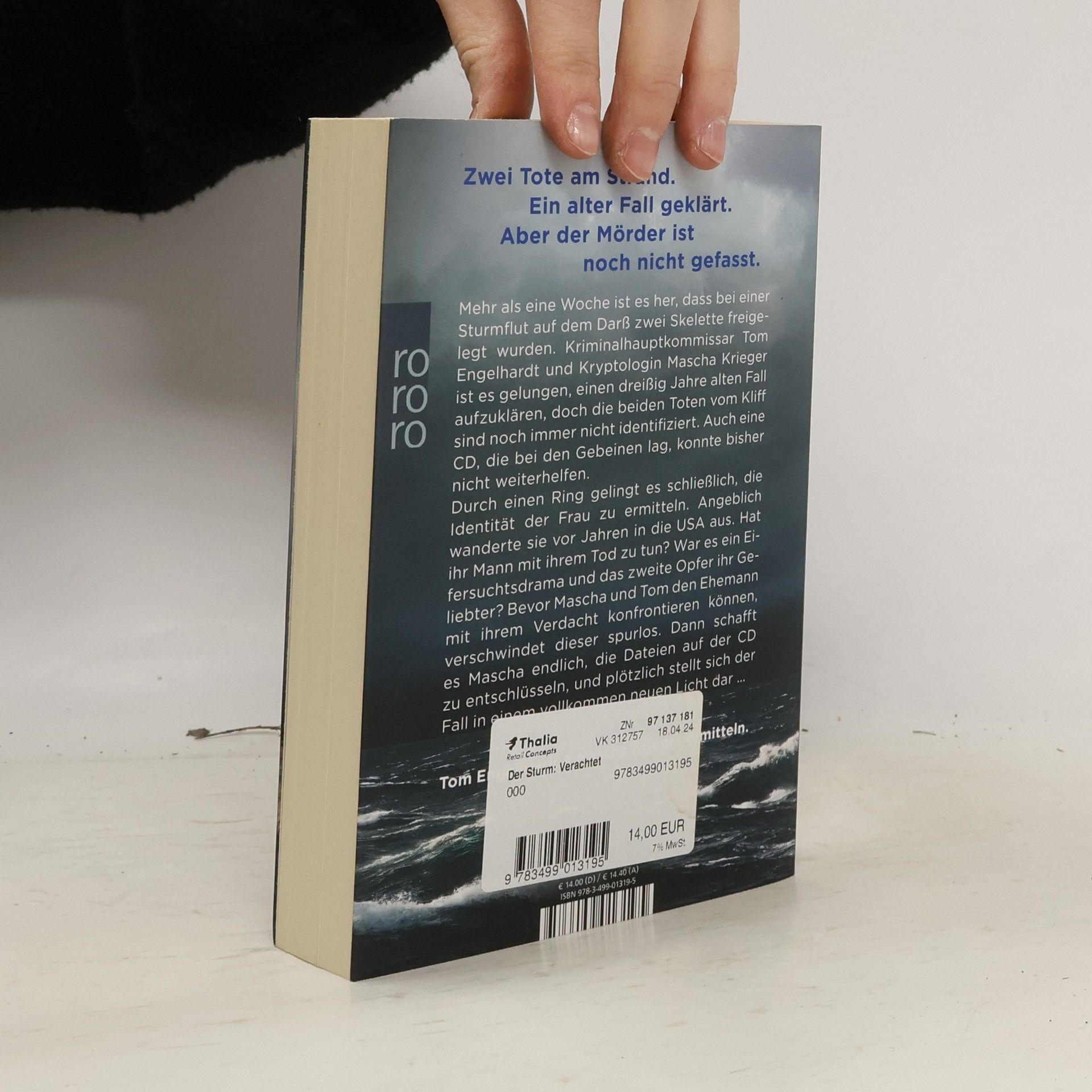 Eine Sturmflut. Zwei Tote. Unzählige Geheimnisse. Mehr als eine Woche ist es her, dass bei einer Sturmflut auf dem Darß zwei Skelette freigelegt wurden. Kriminalhauptkommissar Tom Engelhardt und Kryptologin Mascha Krieger ist es gelungen, einen dreißig Jahre alten Fall aufzuklären, aber die beiden Toten vom Kliff sind noch immer nicht identifiziert. Durch einen Ring gelingt es schließlich, die Identität der Frau zu ermitteln. Angeblich wanderte sie vor Jahren in die USA aus. Hat ihr Mann mit ihrem Tod zu tun? War es ein Eifersuchtsdrama und das zweite Opfer ihr Geliebter? Bevor Mascha und Tom den Ehemann mit ihrem Verdacht konfrontieren können, verschwindet dieser spurlos.