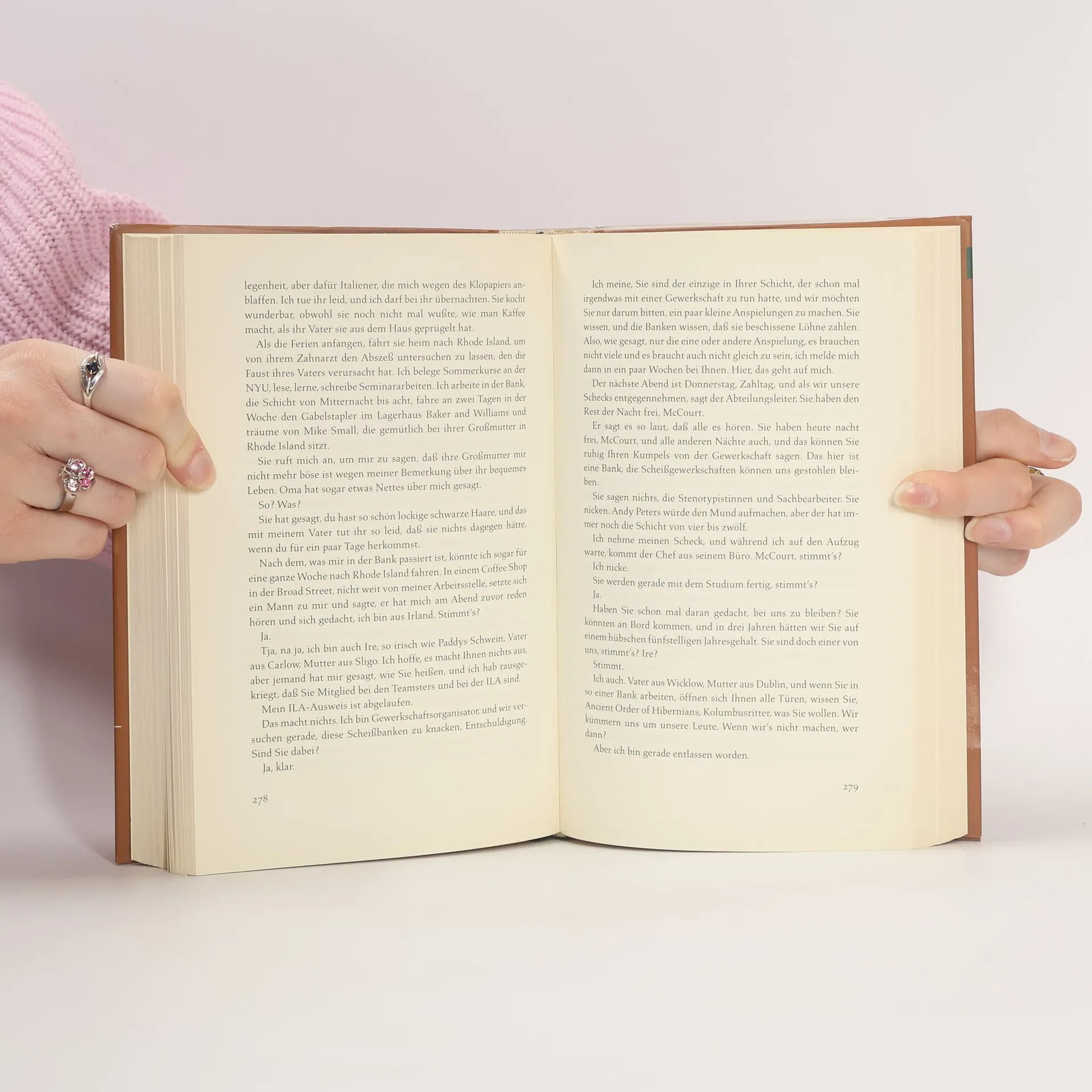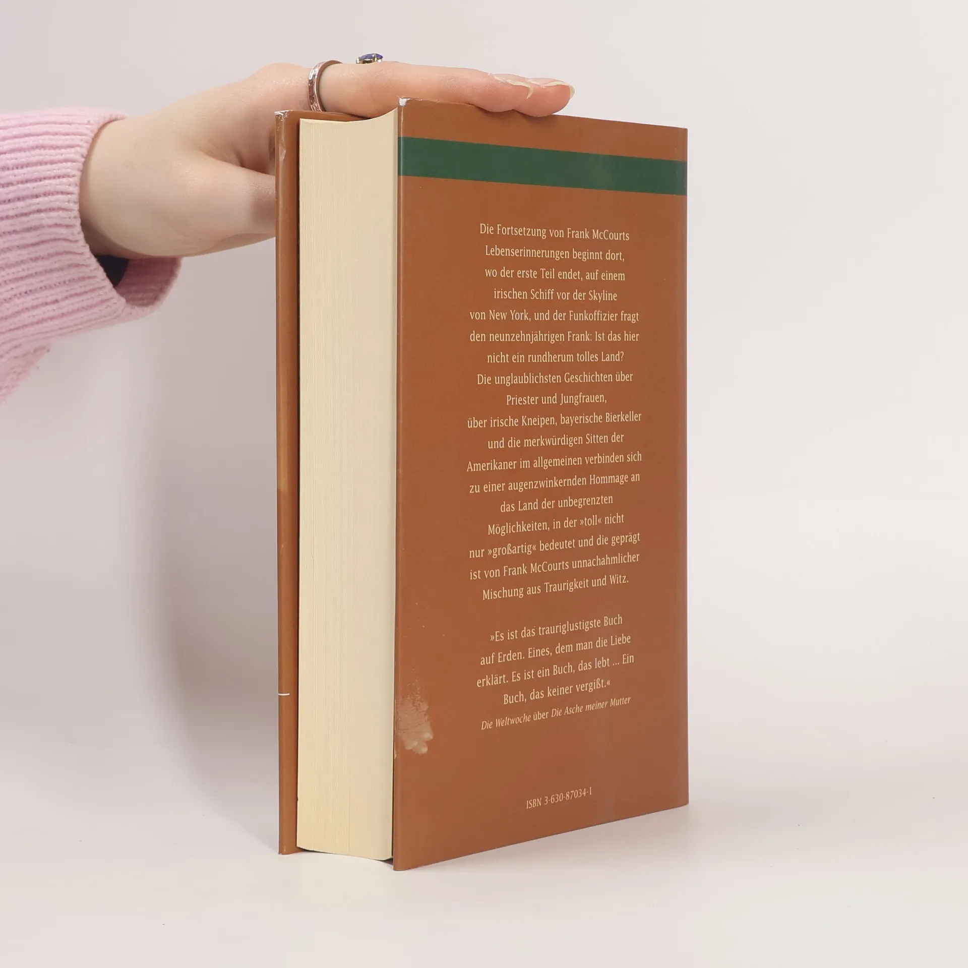 Die Fortsetzung von Frank McCourts Lebenserinnerungen beginnt auf einem irischen Schiff vor New York, wo der neunzehnjährige Frank mit nichts als Hoffnung auf eine bessere Zukunft ankommt. Arm, mit schlechten Zähnen und entzündeten Augen, muss er schnell feststellen, dass sein Aussehen und Akzent ihn im neuen Land als Außenseiter erscheinen lassen. Doch mit der Hilfe eines unkonventionellen katholischen Priesters, der demokratischen Partei und der US Army findet er seinen Platz in der Gesellschaft. Seine ungewöhnlichen Stationen reichen von Hoteldiener über Hafenarbeiter bis hin zu Soldat in Bad Tölz, wo er vom Hundeabrichter zum Materialverwalter aufsteigt. Trotz aller Widrigkeiten wird er High-School-Lehrer, dank der GI-Bill, seiner Liebe zur Literatur und seinem unerschütterlichen Humor. Er gründet eine Familie und holt seine Mutter und Brüder aus Limerick nach. Seine Frau ist Protestantin, und abends erzählt er in irischen Kneipen Anekdoten aus seinem Leben. Auch Limerick besucht er erneut, um die Asche seiner Mutter auf den Gräbern der Familie zu verstreuen. McCourts zweiter Erinnerungsband ist voll unglaublicher Geschichten über Priester, irische Kneipen und die Eigenheiten der Amerikaner, geschildert mit seiner unverwechselbaren Mischung aus Traurigkeit und Witz.