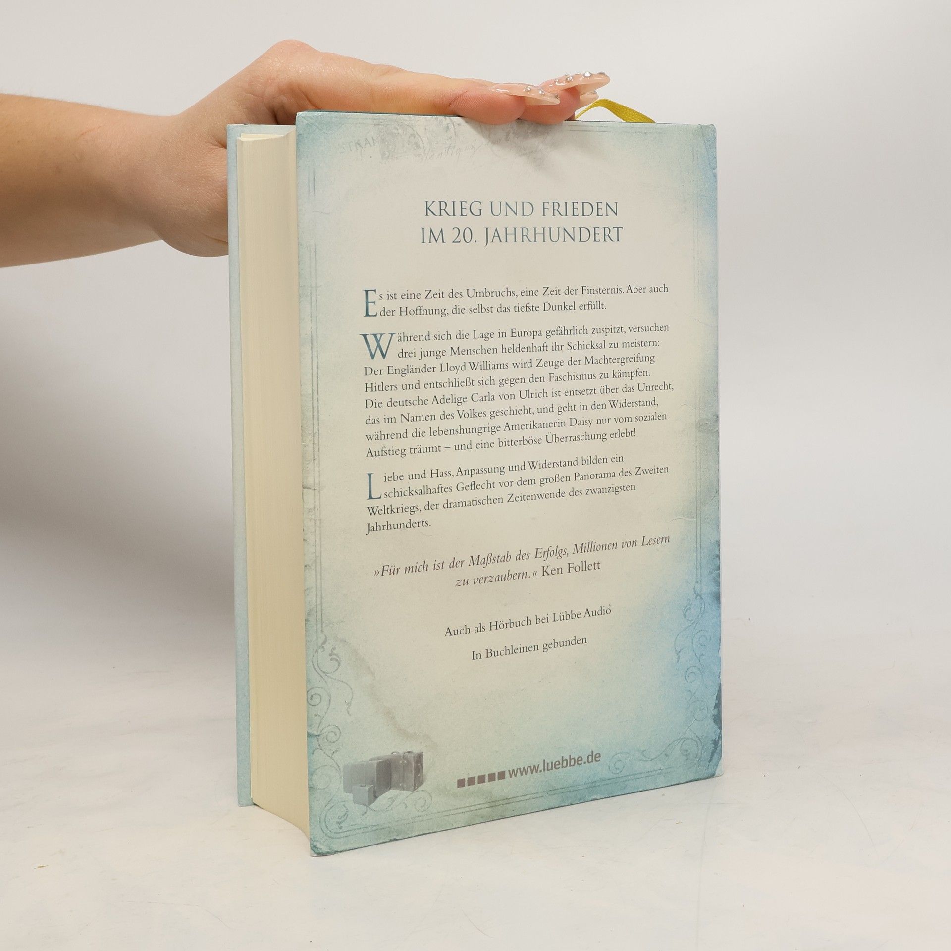 1933. Nach dem Ersten Weltkrieg ist eine neue Generation herangewachsen, während sich die Lage in Europa erneut zuspitzt. In dieser dramatischen Zeit kämpfen drei junge Menschen um ihr Schicksal. Der Engländer Lloyd Williams wird Zeuge der Machtergreifung Hitlers und meldet sich freiwillig als Soldat im Spanischen Bürgerkrieg, um gegen den Faschismus zu kämpfen. Die deutsche Adelige Carla von Ulrich ist entsetzt über das Unrecht, das im Namen des Volkes geschieht, und geht in den Widerstand, was ihre Familie in höchste Gefahr bringt. Die amerikanische Daisy hingegen träumt vom sozialen Aufstieg und heiratet einen englischen Lord, der jedoch auf Seiten der Faschisten steht. Die Geschichte spannt sich von Berlin bis Moskau, von London bis Washington, D.C., und erzählt die miteinander verbundenen Schicksale von Menschen in Deutschland, Russland, England und den USA, während der Zweite Weltkrieg droht. Es ist eine Zeit des Umbruchs und der Finsternis, aber auch der Hoffnung, die selbst das tiefste Dunkel erhellt. Als in sich abgeschlossener historischer Roman ist dies der dramatische Höhepunkt von Ken Folletts Jahrhundert-Trilogie, die mit dem ersten Teil begann und mit dem letzten Teil ihren Abschluss findet. Platz 1 der SPIEGEL-Bestsellerliste.
