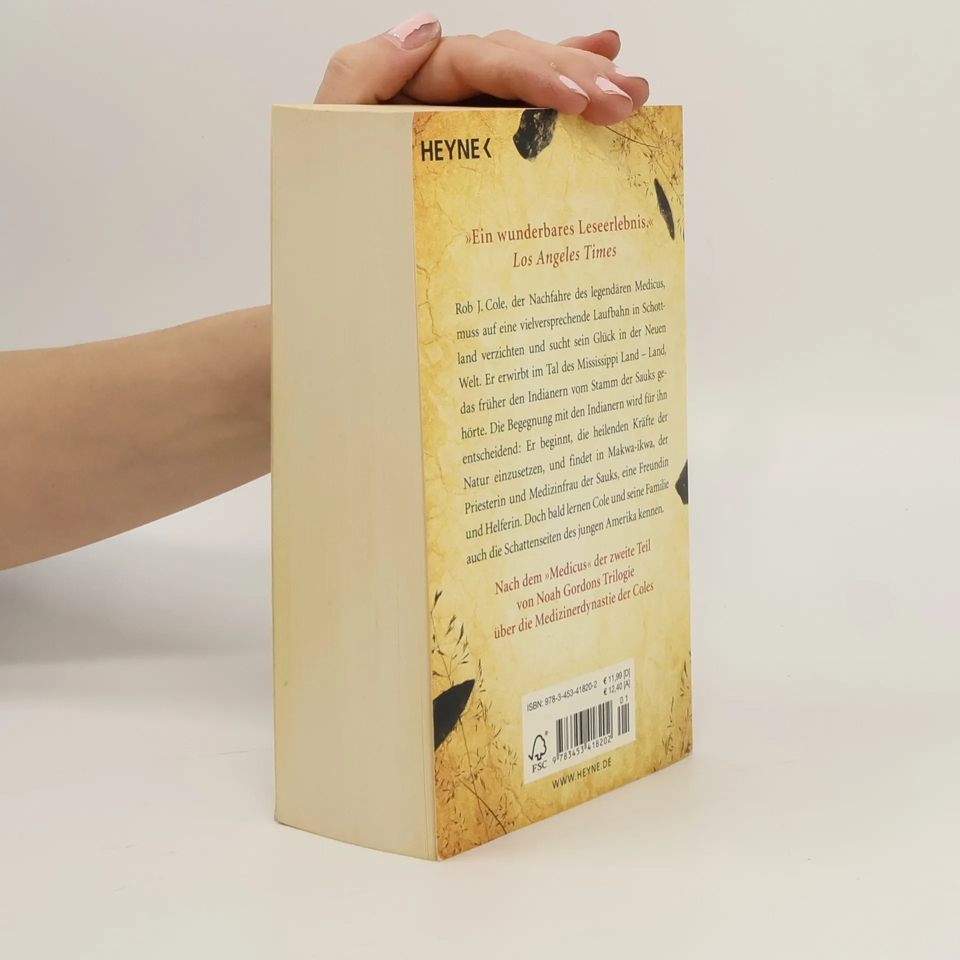 Der zweite Band aus Noah Gordons Trilogie über die Medizinerdynastie der Coles Rob J. Cole, der Nachfahre des legendären Medicus, muss auf eine vielversprechende Laufbahn in Schottland verzichten und sucht sein Glück in der Neuen Welt. Er erwirbt im Tal des Mississippi Land – Land, das früher den Indianern vom Stamm der Sauks gehörte. Die Begegnung mit den Indianern wird für ihn entscheidend: Er beginnt, die heilenden Kräfte der Natur einzusetzen, und findet in Makwa-ikwa, der Priesterin und Medizinfrau der Sauks, eine Freundin und Helferin. Doch bald lernen Cole und seine Familie auch die Schattenseiten des jungen Amerika kennen.