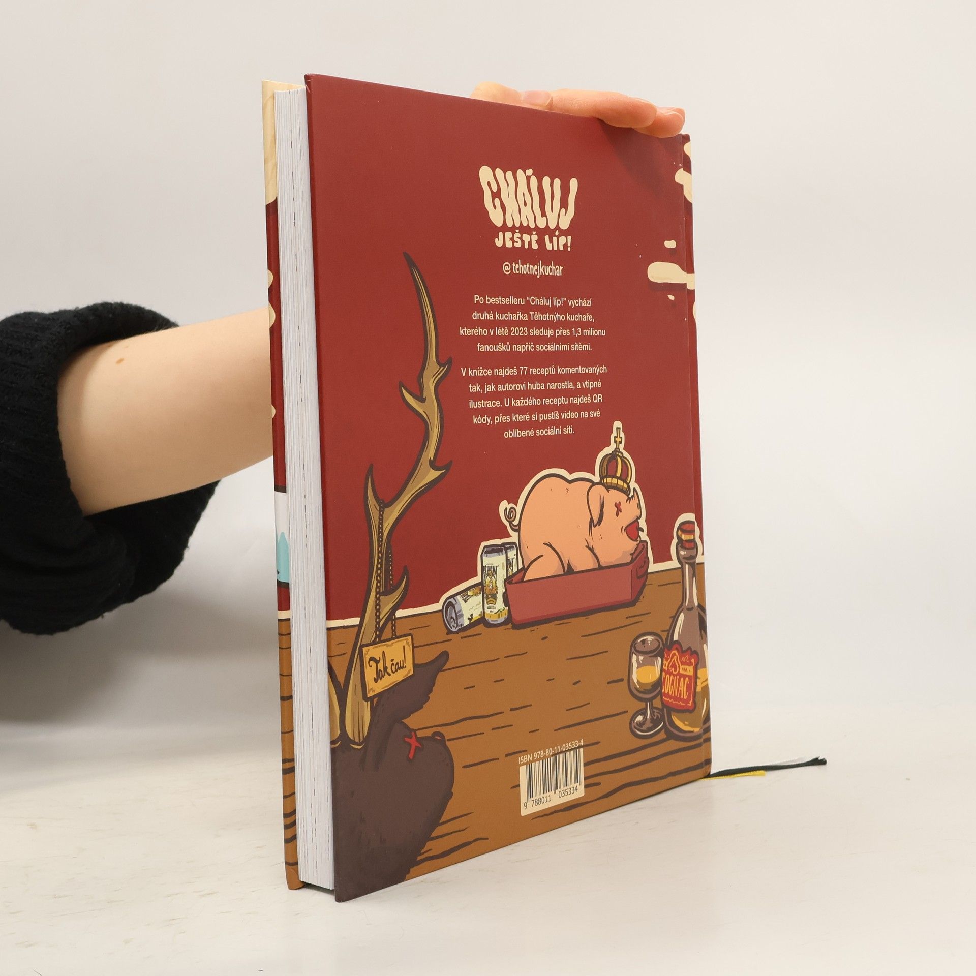 Po necelém roce vychází druhá kuchařka Těhotnýho kuchaře, kterého na podzim 2023 sleduje přes 1,3 milionu fanoušků napříč sociálními sítěmi. Znovu obsahuje 77 receptů, tentokrát s ještě peprnějším komentářem. Formát knihy zůstal zachován, barevných ilustrací přibylo a u každého receptu znovu najdeš QR kódy, odkazující na videorecept.