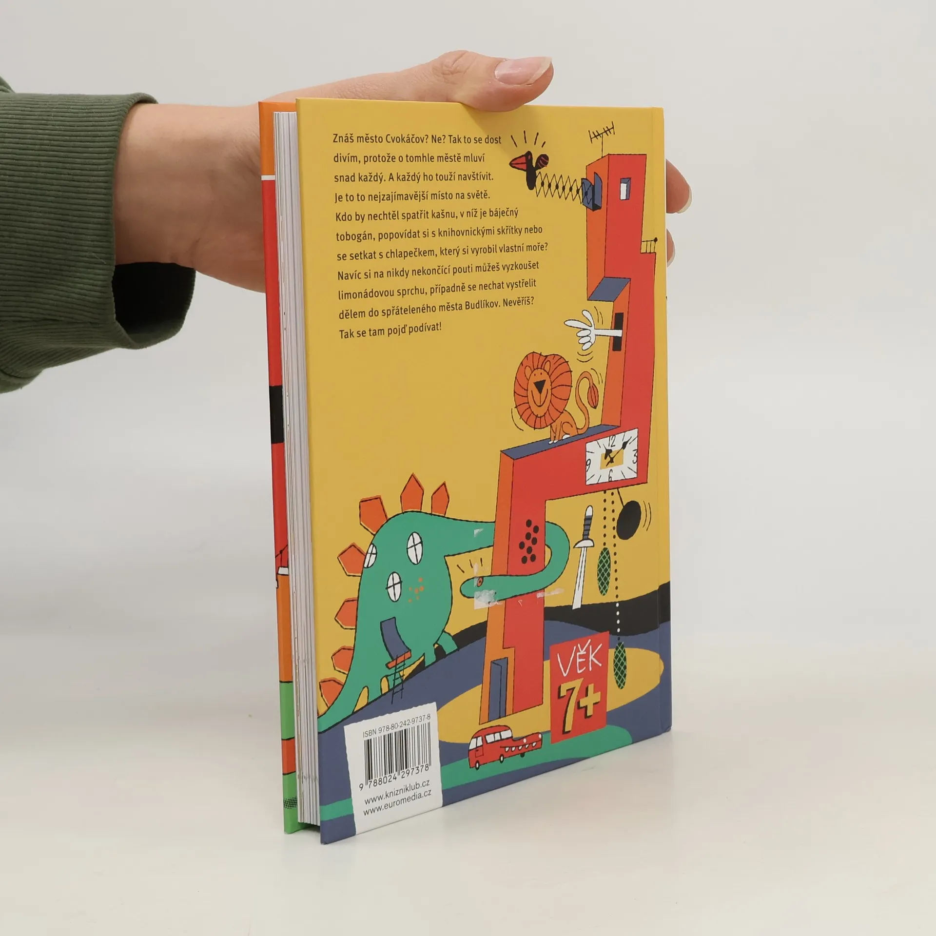 Znáš město Cvokáčov? Ne? Tak to se dost divím, protože o tomhle městě mluví snad každý. A každý ho touží navštívit. Je to to nejzajímavější místo na světě. Kdo by nechtěl spatřit kašnu, v níž je báječný tobogán, popovídat si s knihovnickými skřítky nebo se setkat s chlapečkem, který si vyrobil vlastní moře? Navíc si na nikdy nekončící pouti můžeš vyzkoušet limonádovou sprchu, případně se nechat vystřelit dělem do spřáteleného města Budlíkov. Nevěříš? Tak se tam pojď podívat!