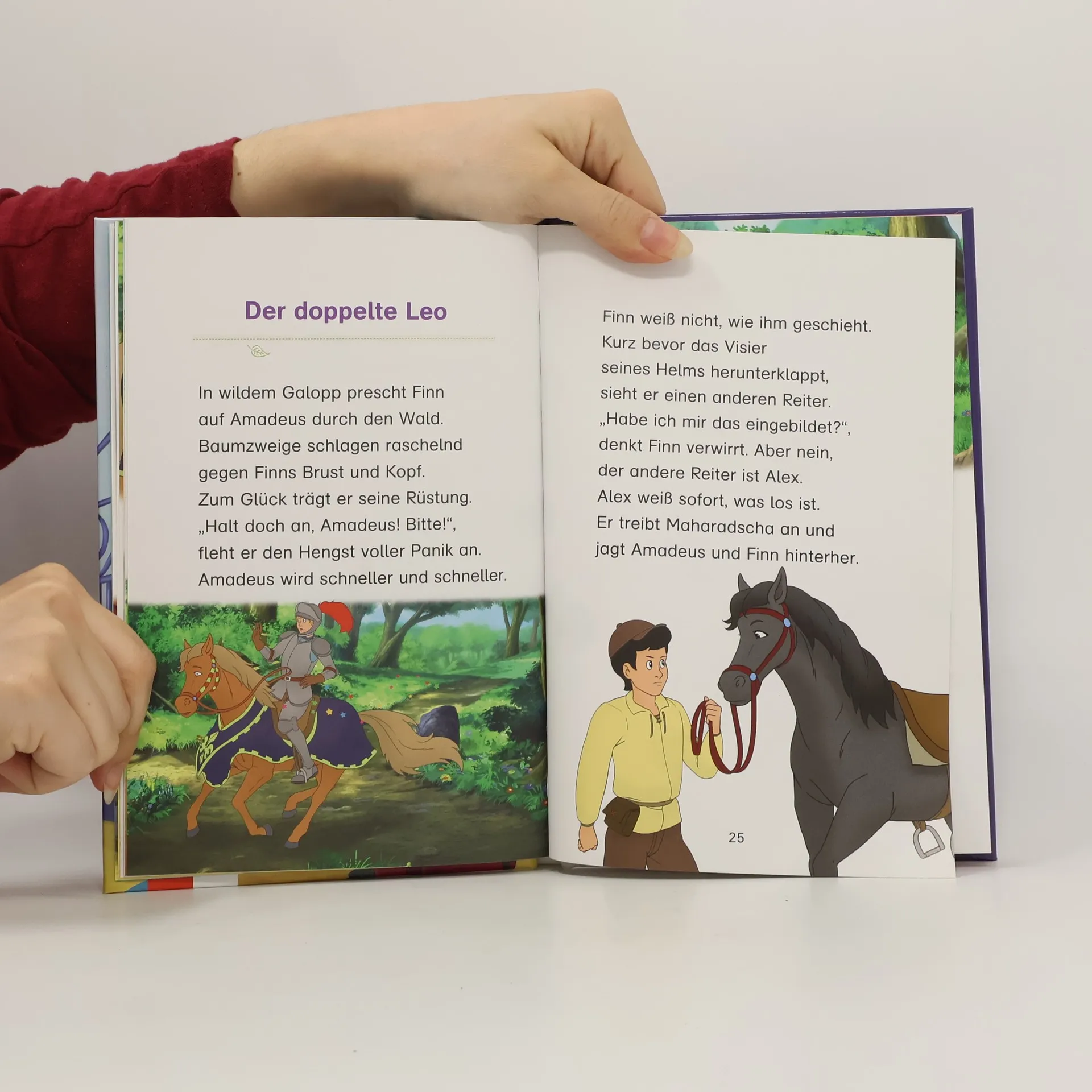Diese spannende Geschichte für Erstleser begeistert Fans von Bibi und Tina in der zweiten Klasse : Bibi und Tina sind begeistert! Auf Schloss Falkenstein wird ein Mittelalter-Film gedreht. Bibi spielt das Burgfräulein. Ritter Leo soll beim Dreh auf Tinas Pferd Amadeus reiten, doch der hat von Pferden so gar keine Ahnung. Unbeholfen klettert er in seiner Rüstung auf Amadeus. Vor Aufregung galoppiert Amadeus mit dem Ritter in den Wald davon … Optimal abgestimmt auf das erste Lesevermögen durch ein ausgewogenes Verhältnis von Textmenge und Illustration, angepasster Schriftart, Schriftgröße und Zeilenlänge Mit Hufeisen-Quiz zur spielerischen Überprüfung des Textverständnisses Der Bibi-und-Tina-Lesepass spornt zu regelmäßigem Lesen an Die perfekte Kombination aus kompetenter Lesevermittlung und spannender Geschichte rund um Pferde, Freundschaft und Abenteuer!