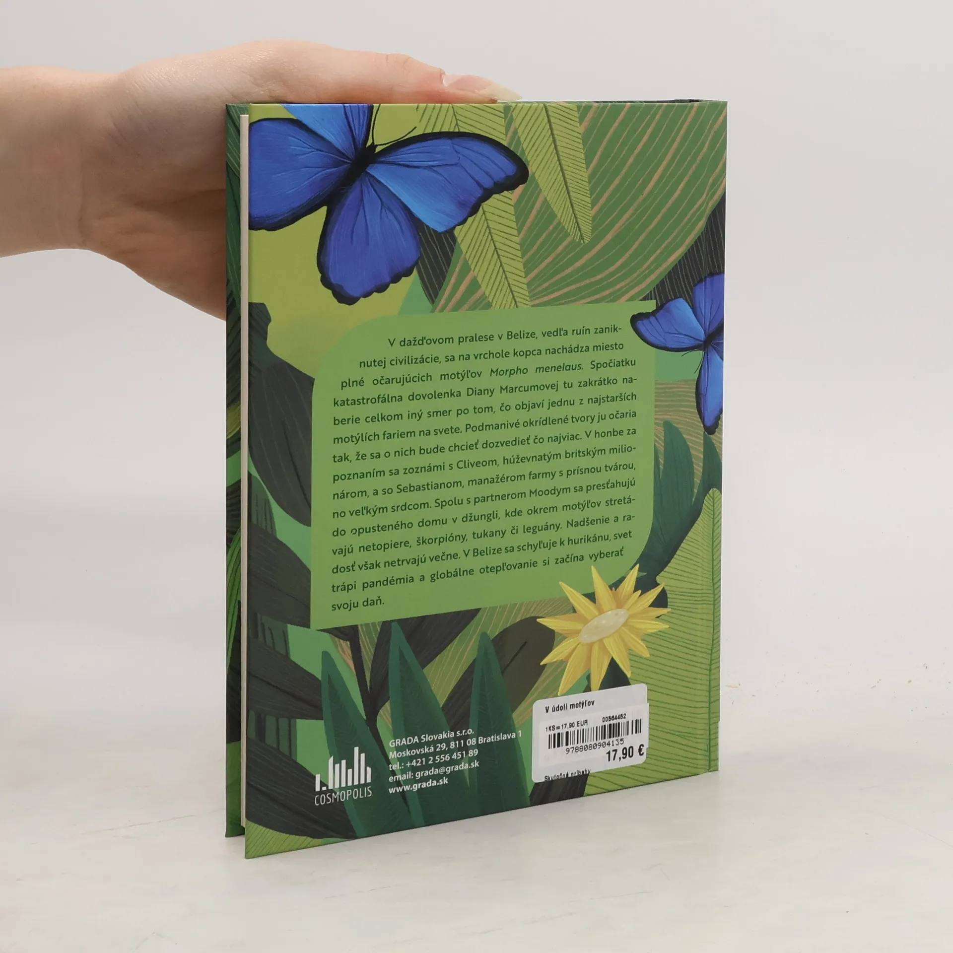 V dažďovom pralese v Belize, vedľa ruín zaniknutej civilizácie, sa na vrchole kopca nachádza miesto plné očarujúcich motýľov Morpho menelaus. Spočiatku katastrofálna dovolenka Diany Marcumovej tu zakrátko naberie celkom iný smer po tom, čo objaví jednu z najstarších motýlích fariem na svete. Podmanivé okrídlené tvory ju očaria tak, že sa o nich bude chcieť dozvedieť čo najviac. V honbe za poznaním sa zoznámi s Cliveom, húževnatým britským milionárom, a so Sebastianom, manažérom farmy s prísnou tvárou, no veľkým srdcom. Spolu s partnerom Moodym sa presťahujú do opusteného domu v džungli, kde okrem motýľov stretávajú netopiere, škorpióny, tukany či leguány. Nadšenie a radosť však netrvajú večne. V Belize sa schyľuje k hurikánu, svet trápi pandémia a globálne otepľovanie si začína vyberať svoju daň.