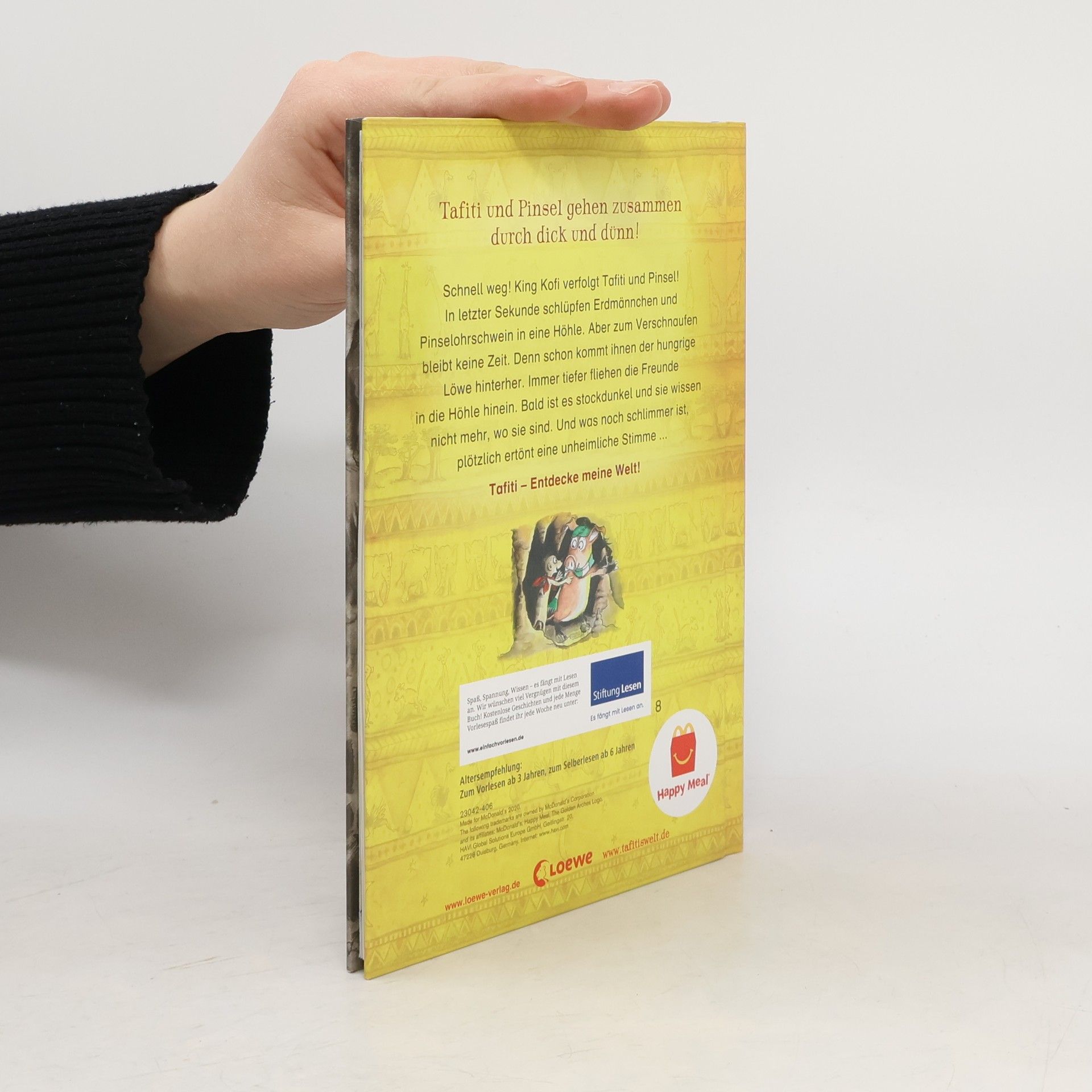 Das Buch ist bei deiner Buchhandlung vor Ort und bei vielen Online-Buchshops erhältlich! + Bücher, die Kinder gerne lesen wollen + Beliebtes Thema: Tiere + Ausgewogenes Text-Bild-Verhältnis + Große Schrift + Kurze Kapitel + Geeignet zum Vorlesen und ersten Selberlesen + Ideal zum Lesenlernen + Hochwertiges Hardcover + Mit vielen farbigen Illustrationen + Bereits über 450.000 verkaufte Tafiti-Bücher + Tafiti und Pinsel gehen zusammen durch dick und dünn! Schnell weg! King Kofi verfolgt Tafiti und Pinsel! In letzter Sekunde schlüpfen Erdmännchen und Pinselohrschwein in eine Höhle. Aber zum Verschnaufen bleibt keine Zeit. Denn schon kommt ihnen der hungrige Löwe hinterher. Immer tiefer fliehen die Freunde in die Höhle hinein. Bald ist es stockdunkel und sie wissen nicht mehr, wo sie sind. Und was noch schlimmer ist, plötzlich ertönt eine unheimliche Stimme ... Julia Boehme („Conni“) erzählt warmherzig und mit viel Humor vom kleinen Erdmännchen Tafiti , das zusammen mit seinen Freunden in Afrika jede Menge spannende Abenteuer erlebt. Ein Buch mit vielen bunten Bildern zum ersten Lesen ab 7 Jahren und zum Vorlesen für Kinder ab 5 Jahren . Mehr über Tafiti unter tafitiswelt. de . Der Titel ist bei Antolin gelistet.