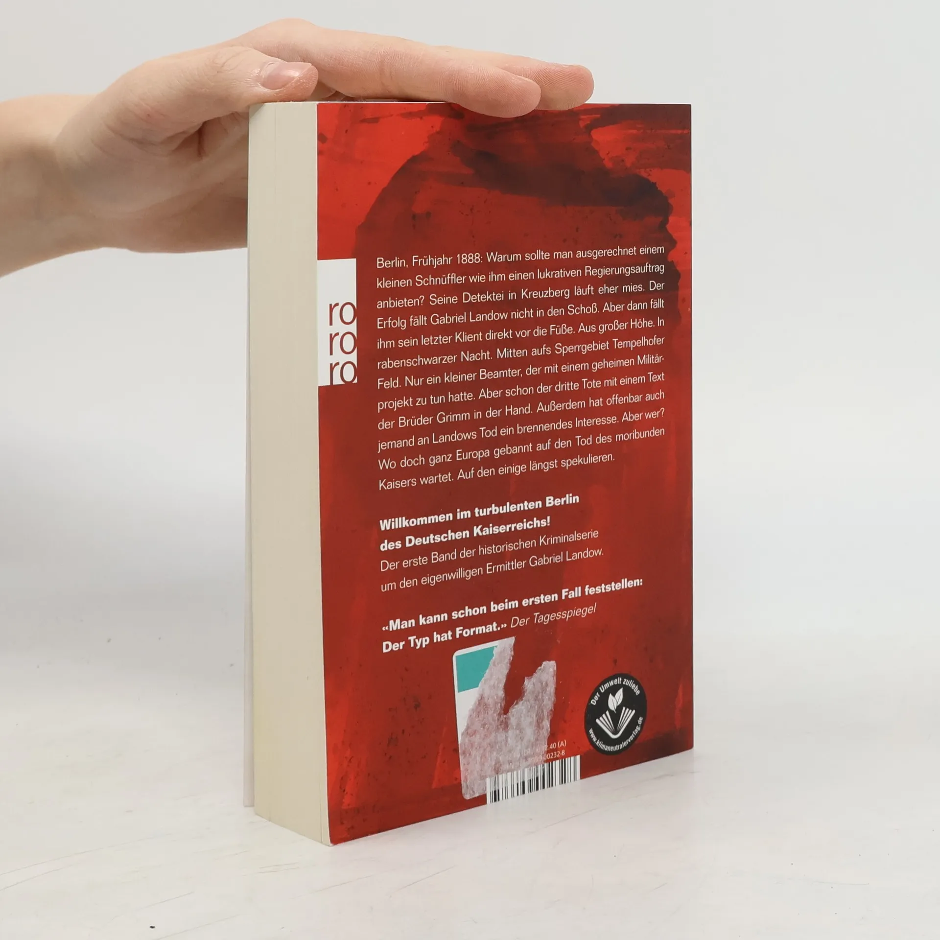 So kennen wir das Berlin Ende des 19. Jahrhunderts bisher nicht. Der große Auftakt der historischen Kriminalserie um Ermittler Gabriel Landow, Ermittler wider Willen im turbulenten Berlin des Deutschen Kaiserreichs, verbindet Spannung, Zeitkolorit, Atmosphäre. Berlin, Frühjahr 1888: Warum sollte man ausgerechnet einem kleinen Schnüffler wie ihm einen lukrativen Regierungsauftrag anbieten? Seine Detektei in Kreuzberg läuft eher mies. Der Erfolg fällt Gabriel Landow nicht in den Schoß. Aber dann fällt ihm sein letzter Klient direkt vor die Füße. Aus großer Höhe. In rabenschwarzer Nacht. Mitten aufs Sperrgebiet Tempelhofer Feld. Nur ein kleiner Beamter, der mit einem geheimen Militärprojekt zu tun hatte. Aber schon der dritte Tote mit einem Buch der Brüder Grimm in der Hand. Und wer hat offenbar auch an Landows Tod ein brennendes Interesse? Wo doch ganz Europa gebannt auf den Tod des moribunden Kaisers wartet. Auf den einige längst spekulieren.