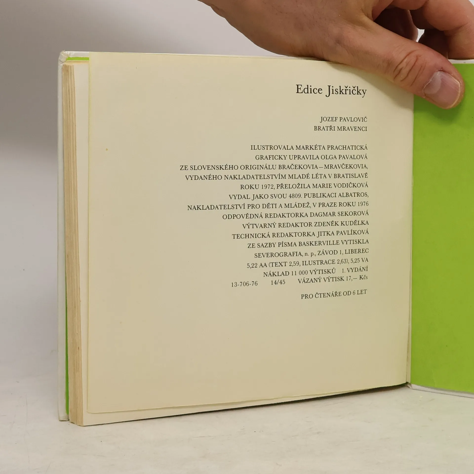 Příhody dvou neposedných mravenců, kteří poznávají svět kolem sebe. Ilustrovala Markéta Prachatická. Edice Jiskřičky. 1. vydání.