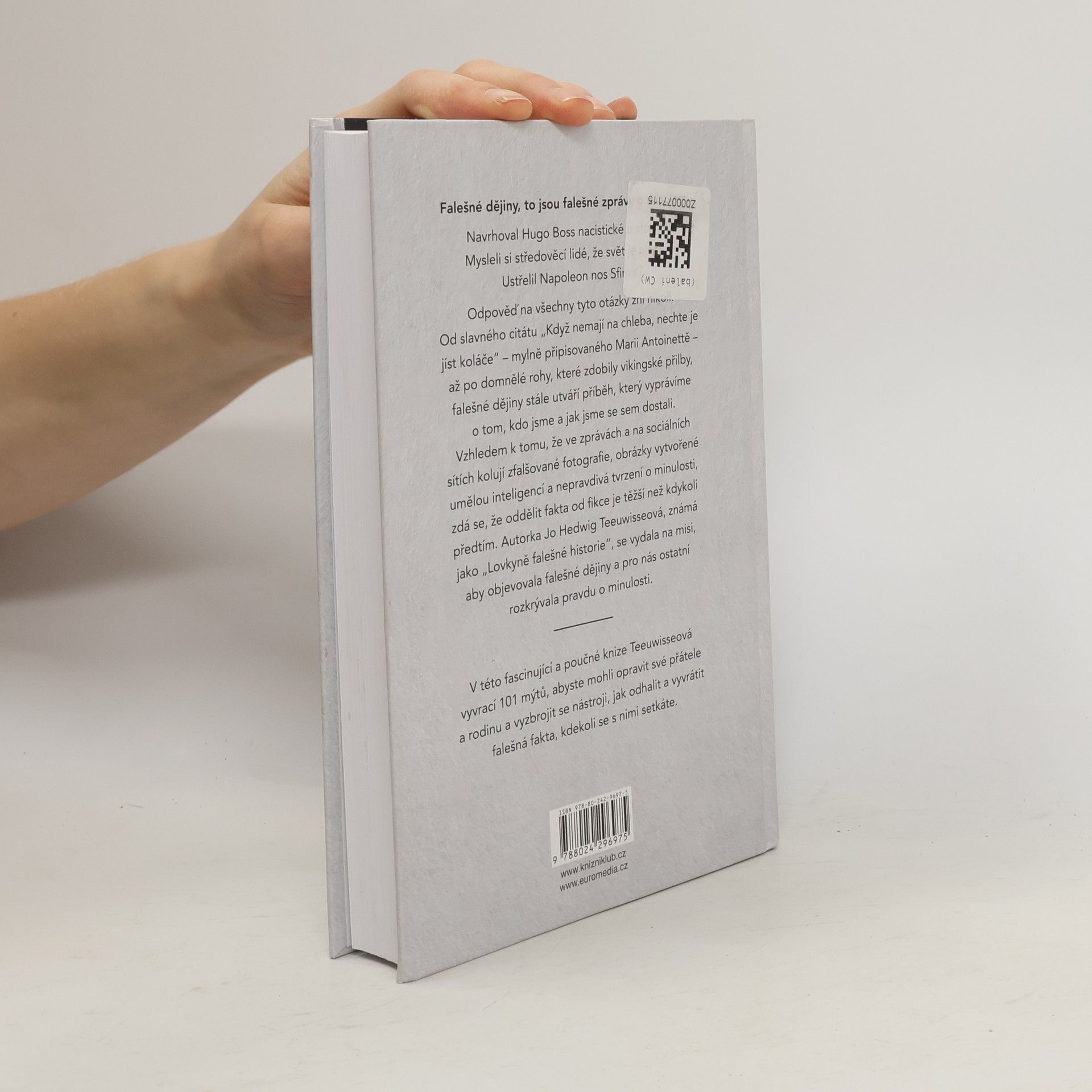 Fake historie, to jsou falešné zprávy o minulosti. Navrhoval Hugo Boss nacistické uniformy? Mysleli si středověcí lidé, že svět je plochý? Ustřelil Napoleon nos Sfinze? Odpověď na všechny tyto otázky zní nikoli. Od slavného citátu „Když nemají na chleba, nechte je jíst koláče“ – mylně připisovaného Marii Antoinettě – až po domnělé rohy, které zdobily vikingské přilby, falešná historie stále utváří příběh, který vyprávíme o tom, kdo jsme a jak jsme se sem dostali. Vzhledem k tomu, že ve zprávách a na sociálních sítích kolují zfalšované fotografie, obrázky vytvořené umělou inteligencí a nepravdivá tvrzení o minulosti, zdá se, že oddělit fakta od fikce je těžší než kdykoli předtím. Autorka Jo Hedwig Teeuwisseová, známá jako „Lovkyně falešné historie“, se vydala na misi, aby objevovala falešnou historii a pro nás ostatní rozkrývala pravdu o minulosti.