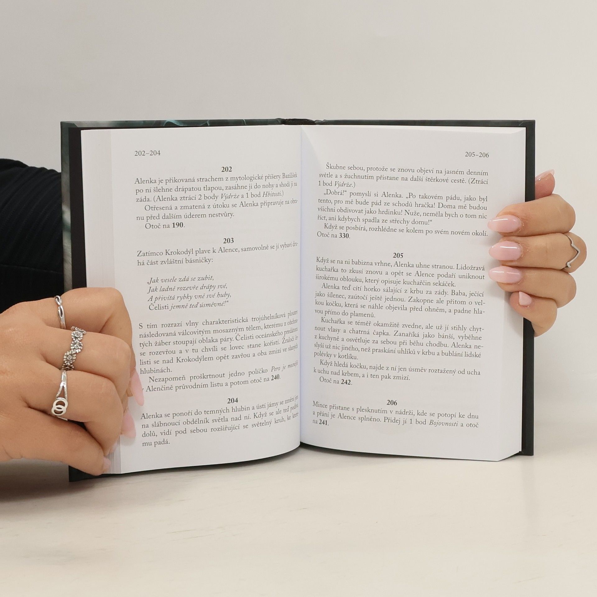 Mnoho let po událostech Alenčina dobrodružství v Říši divů a za zrcadlem se Alenka ocitá zpět v Říši divů. Je na ní, aby zachránila svět hracích karet a mluvících zvířat od stále více a více pomatené Srdcové královny. Co by se stalo, kdyby se Alenka nenapila z lahvičky popsané cedulkou “Vypij mě“, nebo kdyby si nedala s Kloboučníkem, Březňákem a Sedmispáčem čaj? Nyní to můžeš zjistit! V knize totiž budeš právě ty rozhodovat, kterou cestou se Alenka dá, které riziko podstoupí a se kterými podivnými obyvateli říše divů bude bojovat. Jsi připraven znovu vstoupit do králičí nory?