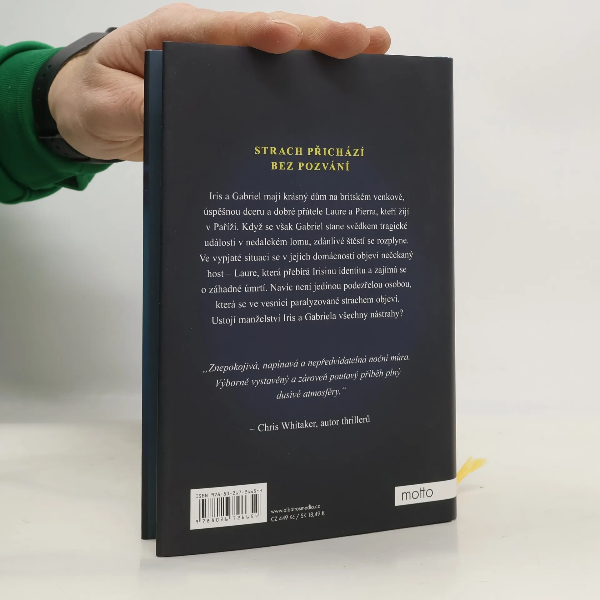 Strach přichází bez pozvání. Iris a Gabriel mají krásný dům na britském venkově, úspěšnou dceru a dobré přátele Laurie a Pierra, kteří žijí v Paříži. Když se však Gabriel stane svědkem tragické události v nedalekém lomu, zdánlivé štěstí se rozplyne. Ve vypjaté situaci se v jejich domácnosti objeví nečekaný host – Laurie, která přebírá Irisinu identitu a zajímá se o záhadné úmrtí. Navíc není jedinou podezřelou osobou, která se ve městě paralyzovaném strachem objeví. Ustojí manželství Iris a Gabriela všechny nástrahy?