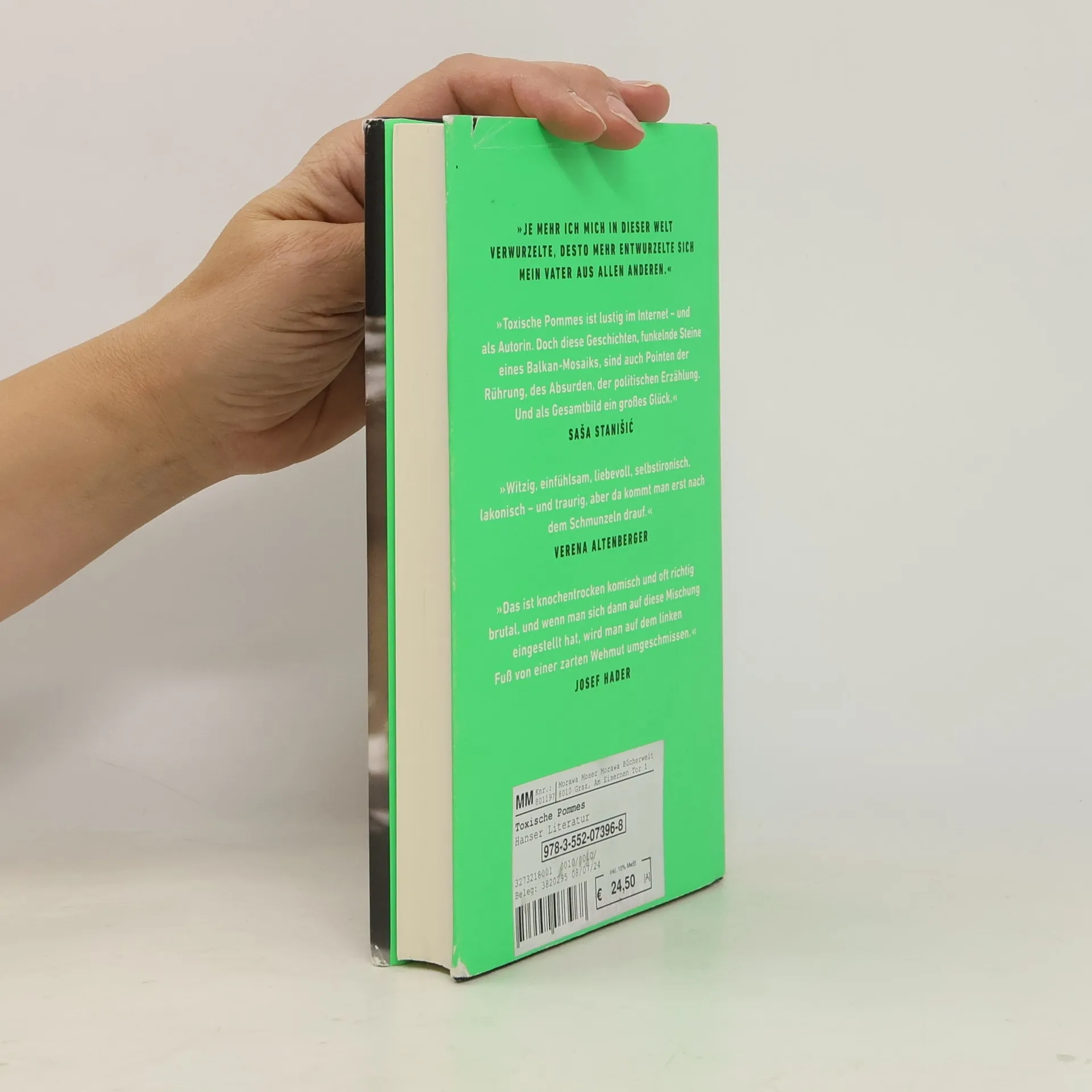 Der Debütroman von Toxische Pommes: »Diese Geschichten sind Pointen der Rührung, des Absurden, der politischen Erzählung. Und als Gesamtbild ein großes Glück.« Saša Stanišić »Was hat uns das neue Leben gekostet? Meinen Vater seine Stimme, meine Mutter ihre Lebendigkeit. Und mich?« Vor dem Krieg in Jugoslawien flüchtet die Familie in ein Einwanderungsland, das keines sein möchte. Dieses Buch erzählt von der Beziehung zwischen einer Tochter, deren einziger Lebenssinn darin besteht, die perfekte Migrantin zu werden, und ihrem Vater, der sich bei dem Versuch, ihr das zu ermöglichen, selbst verliert. Erstmals gibt es die großartig lakonische Toxische Pommes in Romanform. Seit der Corona-Pandemie ist sie in den sozialen Medien mit satirischen Kurzvideos über die schönen und hässlichen Seiten der Gesellschaft erfolgreich, und seit kurzem steht sie mit ihrem Kabarettprogramm auch auf den analogen Bühnen.