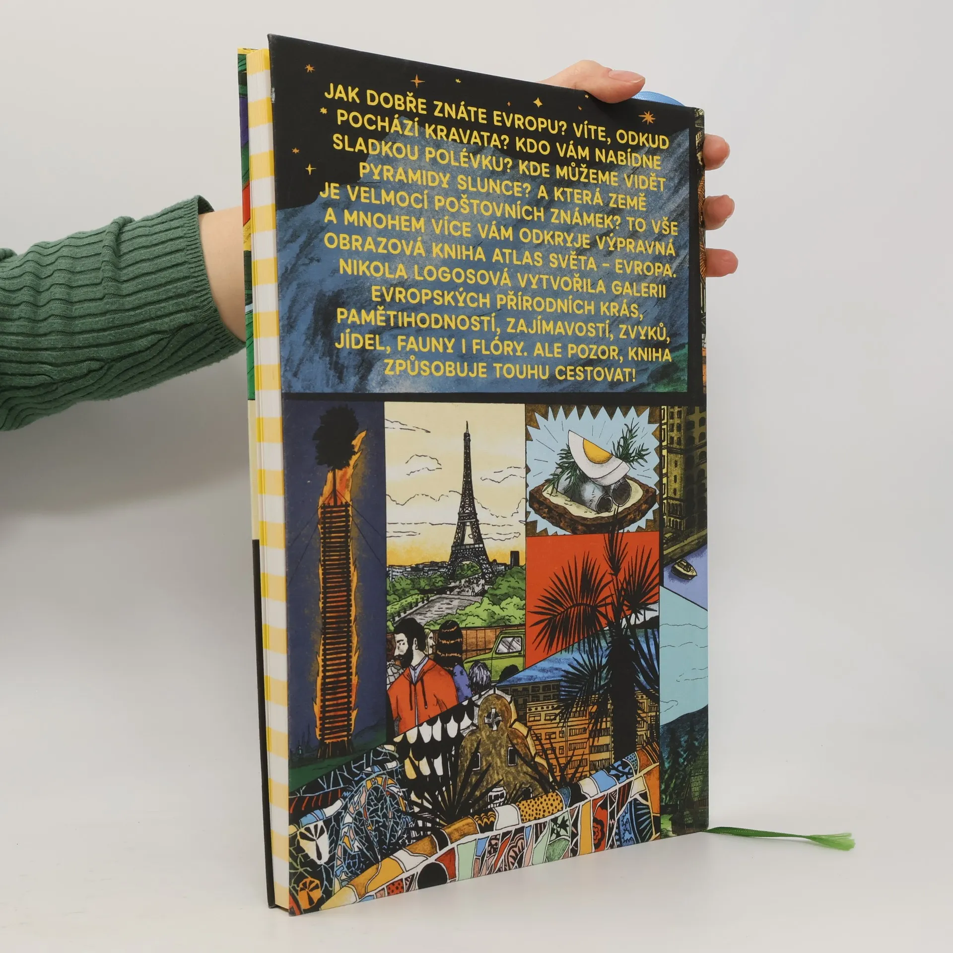 Celá Evropa v jedné knize? Že to není možné? Ale je, Nikola Logosová vytvořila úchvatnou galerii všech evropských zemí, jejich přírodních krás, pamětihodností, zajímavostí, jídel, fauny i flóry. Vydejte se na výlet s výpravnou obrazovou knihou Atlas světa – Evropa. Víte, odkud pochází kravata? Kdo vám nabídne sladkou polévku? Kde můžete vidět pyramidy slunce? A která země je velmocí poštovních známek? To vše (a ještě mnohem více) najdete na sto stranách této knihy. Ale pozor, způsobuje touhu cestovat!