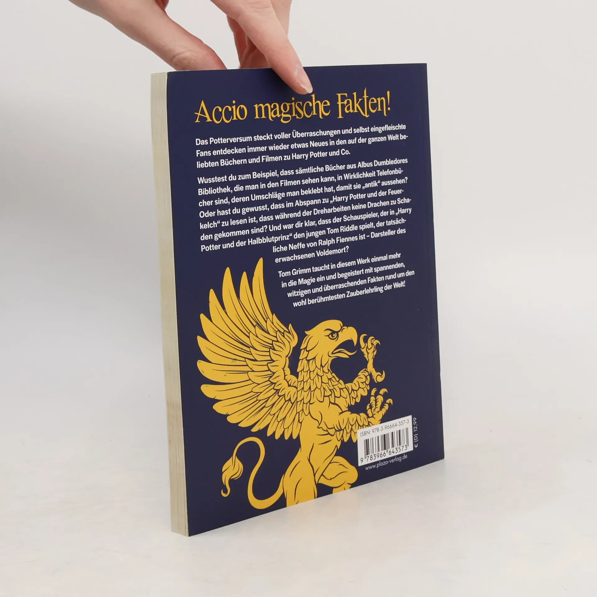 Accio magische Fakten! Das Potterversum steckt voller Überraschungen und selbst eingefleischte Fans entdecken immer wieder etwas Neues in den auf der ganzen Welt beliebten Büchern und Filmen zu Harry Potter und Co. Wusstest du zum Beispiel, dass sämtliche Bücher aus Albus Dumbledores Bibliothek, die man in den Filmen sehen kann, in Wirklichkeit Telefonbücher sind, deren Umschläge man beklebt hat, damit sie „antik“ aussehen? Oder hast du gewusst, dass im Abspann zu „Harry Potter und der Feuerkelch“ zu lesen ist, dass während der Dreharbeiten keine Drachen zu Schaden gekommen sind? Und war dir klar, dass der Schauspieler, der in „Harry Potter und der Halbblutprinz“ den jungen Tom Riddle spielt, der tatsächliche Neffe von Ralph Fiennes ist – Darsteller des erwachsenen Voldemort? Tom Grimm taucht in diesem Werk einmal mehr in die Magie ein und begeistert mit spannenden, witzigen und überraschenden Fakten rund um den wohl berühmtesten Zauberlehrling der Welt! Egal ob für dich selbst oder als Geschenk – dieses liebevoll aufgemachte Buch ist für jeden Harry-Potter-Leser ein Muss! Die ultimative Wissenssammlung für Potter-Fans!