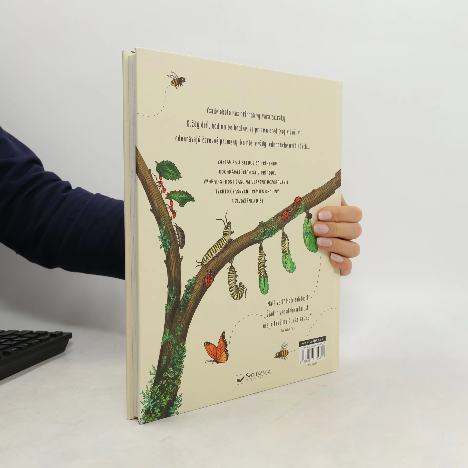 Táto kniha je plná úžasných udalostí, ktoré sa každý deň odohrávajú v prírode. Niektoré z nich trvajú dlho, dni i týždne napríklad húsenica, ktorá sa zakuklila a vyliahne sa ako dospelý motýľ, alebo veverička zahrabávajúca si zásoby žaluďov na zimu. Iné zbadáš iba v okamihu východslnka alebo mraky meniace svoj tvar. 50 príbehov z prírody sprevádzajú farebné ilustrácie. Zastav sa teda, prezeraj si knihu a sleduj tieto ohromné udalosti. Obdivuj prírodu v jej rozmanitosti. Uvidíš, čo všetko objavíš a spoznáš, keď si urobíš na prezeranie knihy a pozorovanie prírody dostatok času.