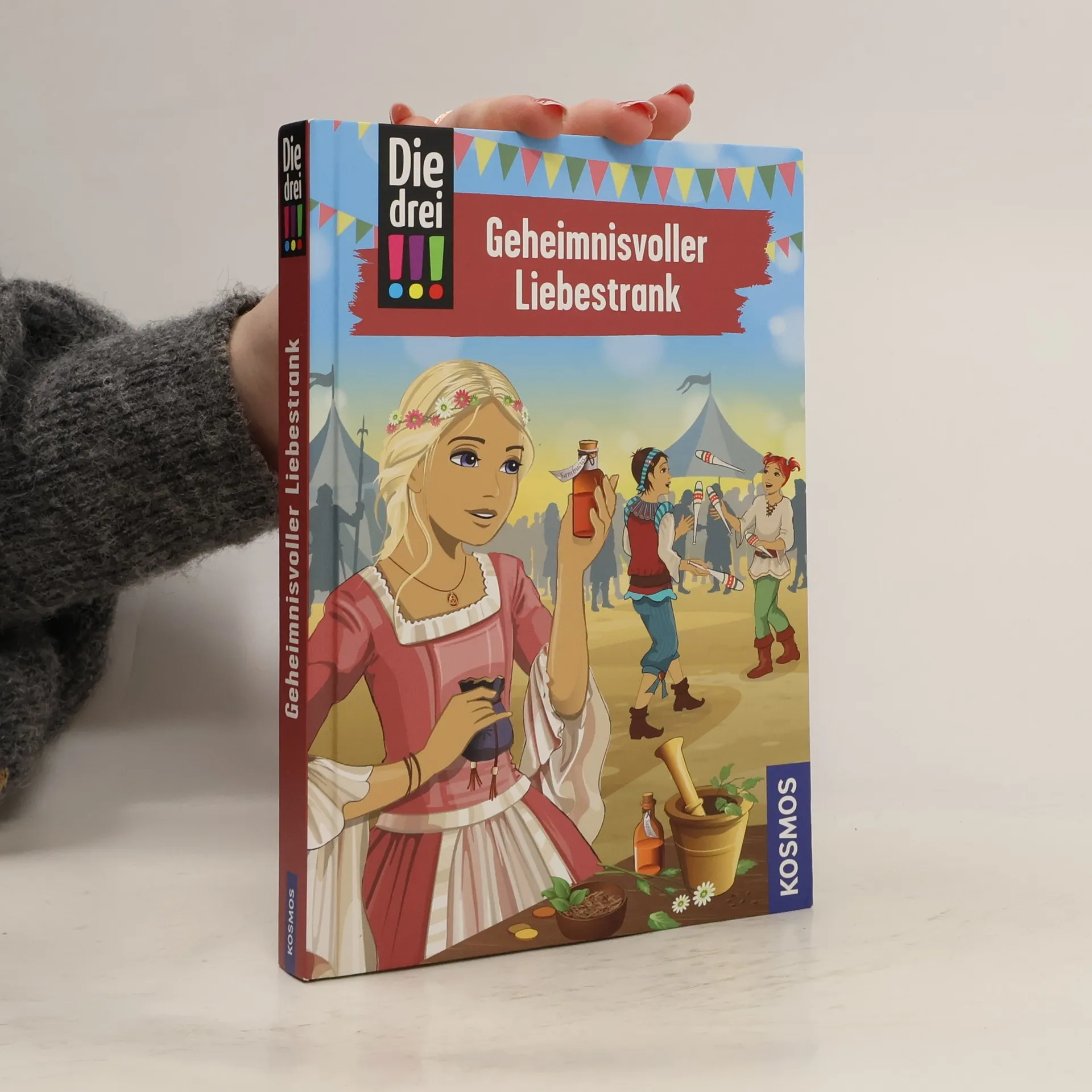 Kim, Franzi und Marie sind „Die drei !!!“. Mutig und clever ermitteln die drei Detektivinnen und sind jedem Fall gewachsen. Das sagenumwobene Kräuterbuch, die Attraktion des Schönburger Mittelalterfestes, verschwindet plötzlich aus dem Glastresor. Können die drei !!! den Dieb im bunten Marktreiben fassen?