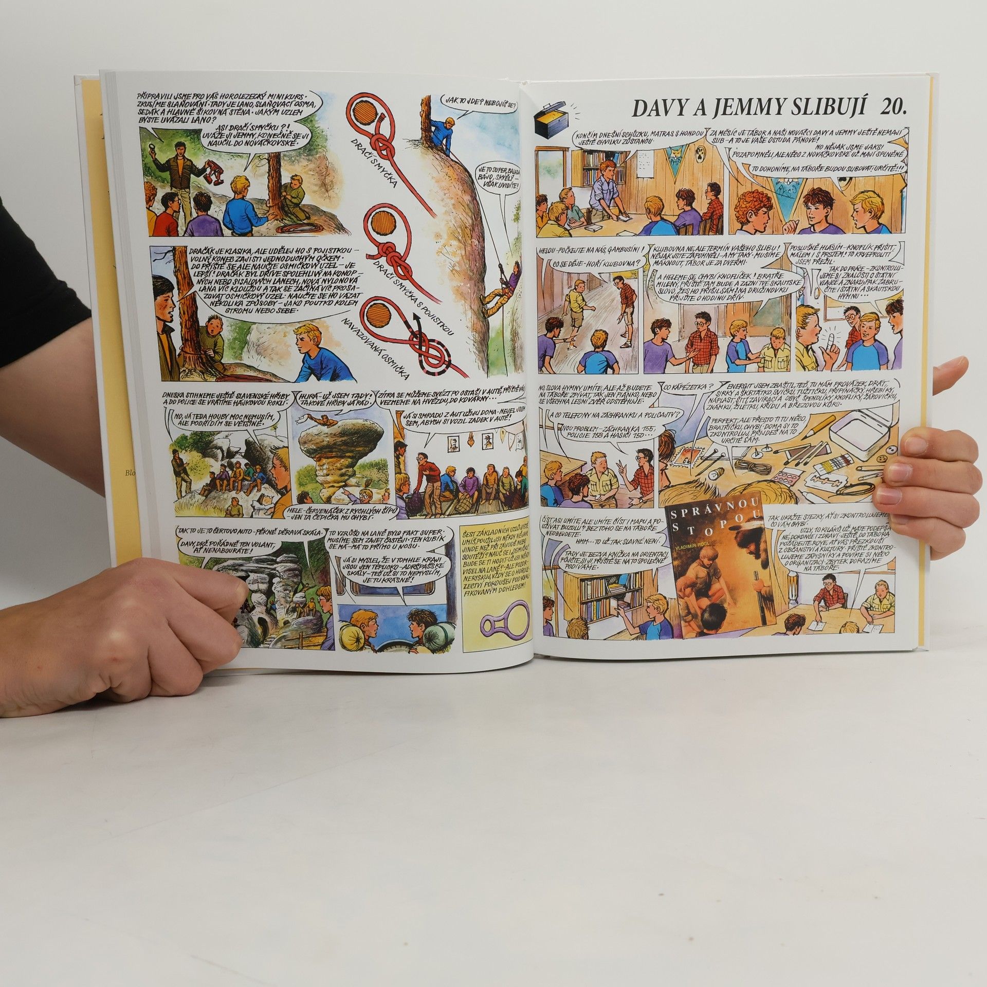 Čtyřicet tři kreslených příběhů. Dvě opravdové družiny jednoho skautského střediska skutečně jezdily na výpravy a výlety na skutečná místa v Krušných horách, na Ivančenu, do Orlovských lesů, do Údolí Manětínského potoka, na Šumavu nebo do Broumovských stěn. Naše zem je krásná a je v ní mnoho takových míst. Družiny opravdu uspořádaly řadu akcí – akademii, výstavky, čistily potok a samozřejmě jezdily o prázdninách na tábor. Skautská činnost je různorodá a v těchto příbězích jsou další inspirace vybízející k napodobení. Dotýkají se různých oblastí, které se mohou hodit i ve škole – historie, přírodopis a i trocha zeměpisu tu nechybí.